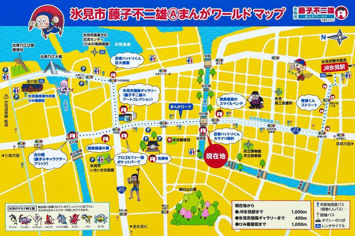 氷見駅を出ると藤子不二雄Ⓐ先生のまんがキャラクターのモニュメントなどが設置されています。散策しながら市街地を歩くのも楽しいです。