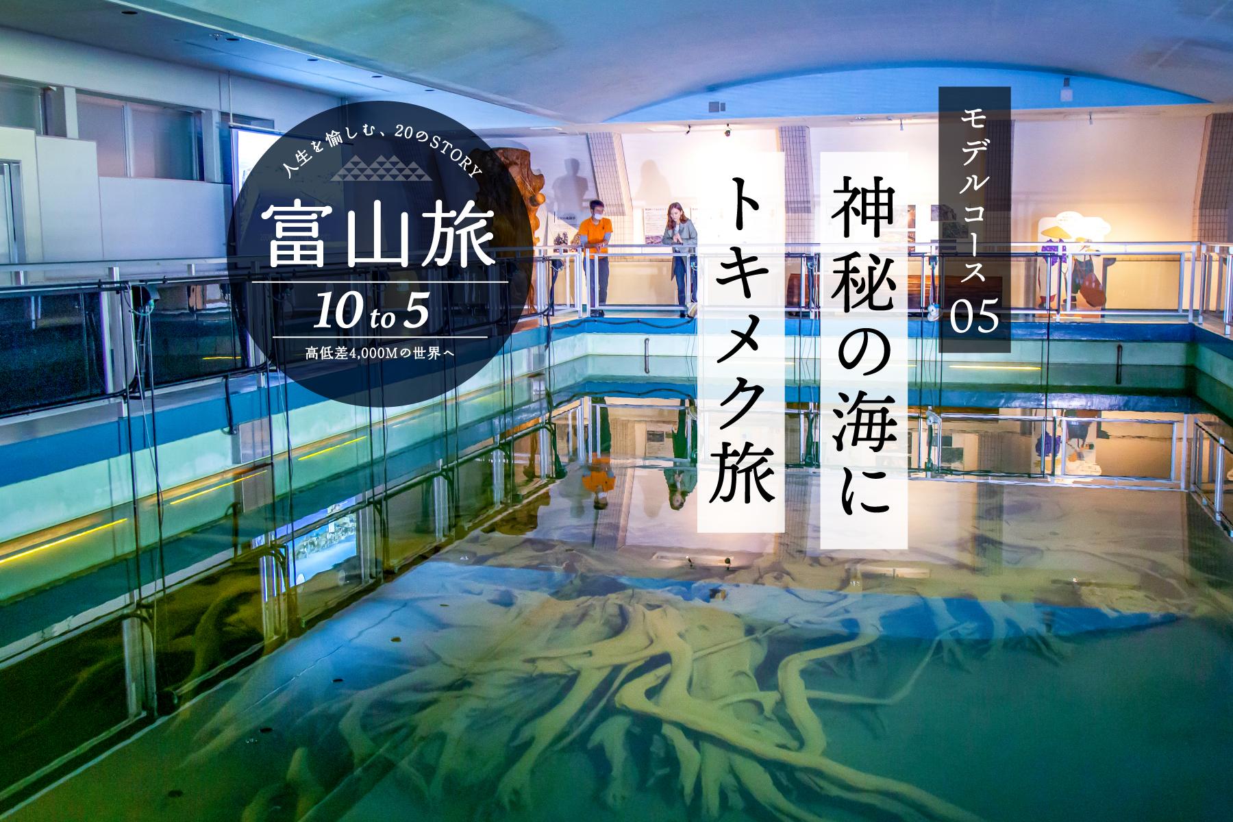 富山湾の三大神秘をめぐるドライブは、トキメキとワクワクに満ちています。富山駅を出発し、目指すは富山湾。海沿いに広がるいにしえの宿場町「なめりかわ宿場回廊」を歩きます。「ほたるいかミュージアム」「魚津埋没林博物館」で富山湾の神秘にふれた後は、一路、山手へ。「東福寺野自然公園」から富山湾のパノラマを眺めましょう。