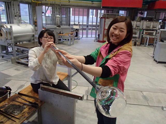 まずは、オリジナルのガラス作品作りにチャレンジ! ガラス作家さんがサポートについてくれるので、初めてでも安心して作れます。予約しておくとスムーズです。