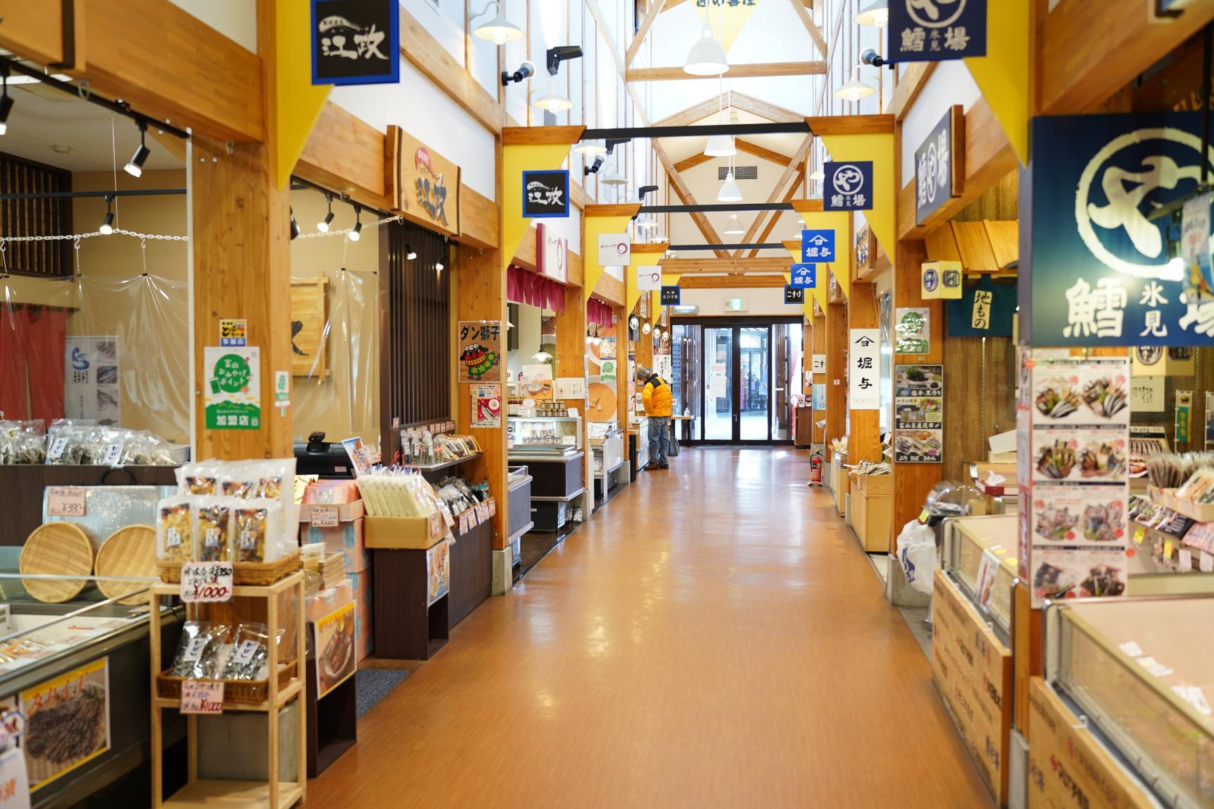 館内では新湊の海の幸や地元の特産品中心としたお土産を購入できるほか、水揚げしたての新鮮な海の幸を使用したお刺身や海鮮丼をを食べることができるレストランや、熱々の状態で海の幸をいただくことができる浜焼きコーナーなどがあります。