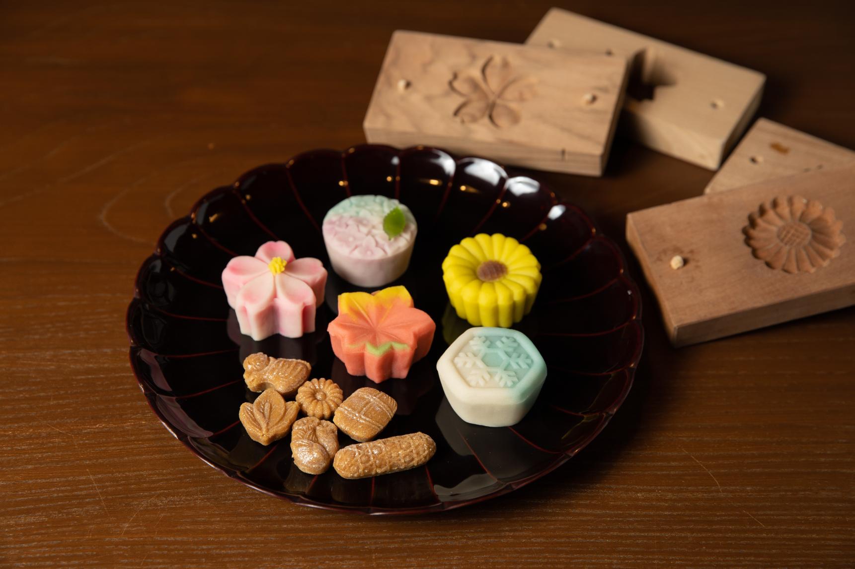 実際にお菓子を製作するときに使用する菓子木型で、和菓子作り体験を行うこともできます。(要予約)