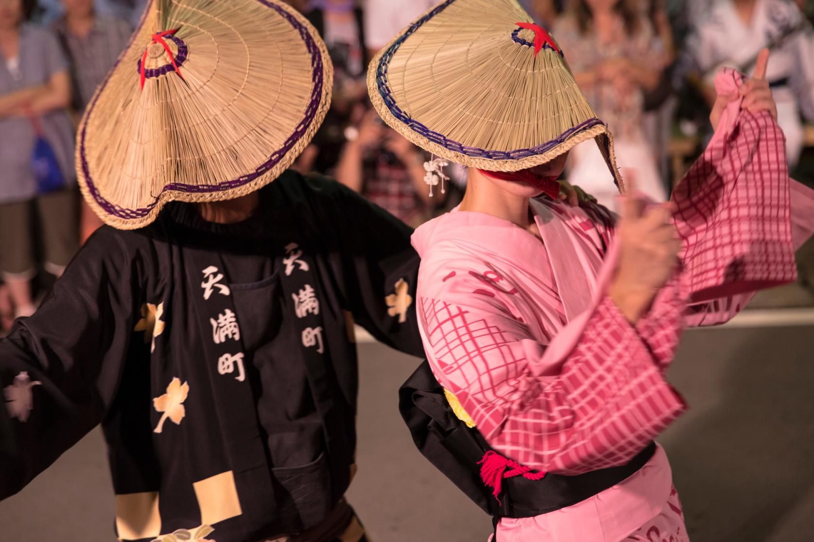 越中八尾は富山市南西部の山あいの坂の町。毎年9月1日から3日にかけて行われる「おわら風の盆」では、昔ながらの家並みが続く石畳の坂道に数千のぼんぼりが立ち並び、地方衆が奏でる哀調あふれるおわら節の旋律にのせて踊り子たちが踊りを披露します。揃いの法被や浴衣姿に、編み笠を目深にかぶった男女の踊り子が、三味線や胡弓の音にあわせ町中を踊り歩く「町流し」は必見。艶やかで優雅な女踊りや、ダイナミックで力強い男踊り、地方衆の哀愁漂う唄や音色が見る者を魅了します。夜には、町中を彩るぼんぼりの灯りにしっとりと優美に舞う踊り子たちの姿が浮かび上がり、実に幻想的。心に響く幽玄の世界に酔いしれずにはいられません。