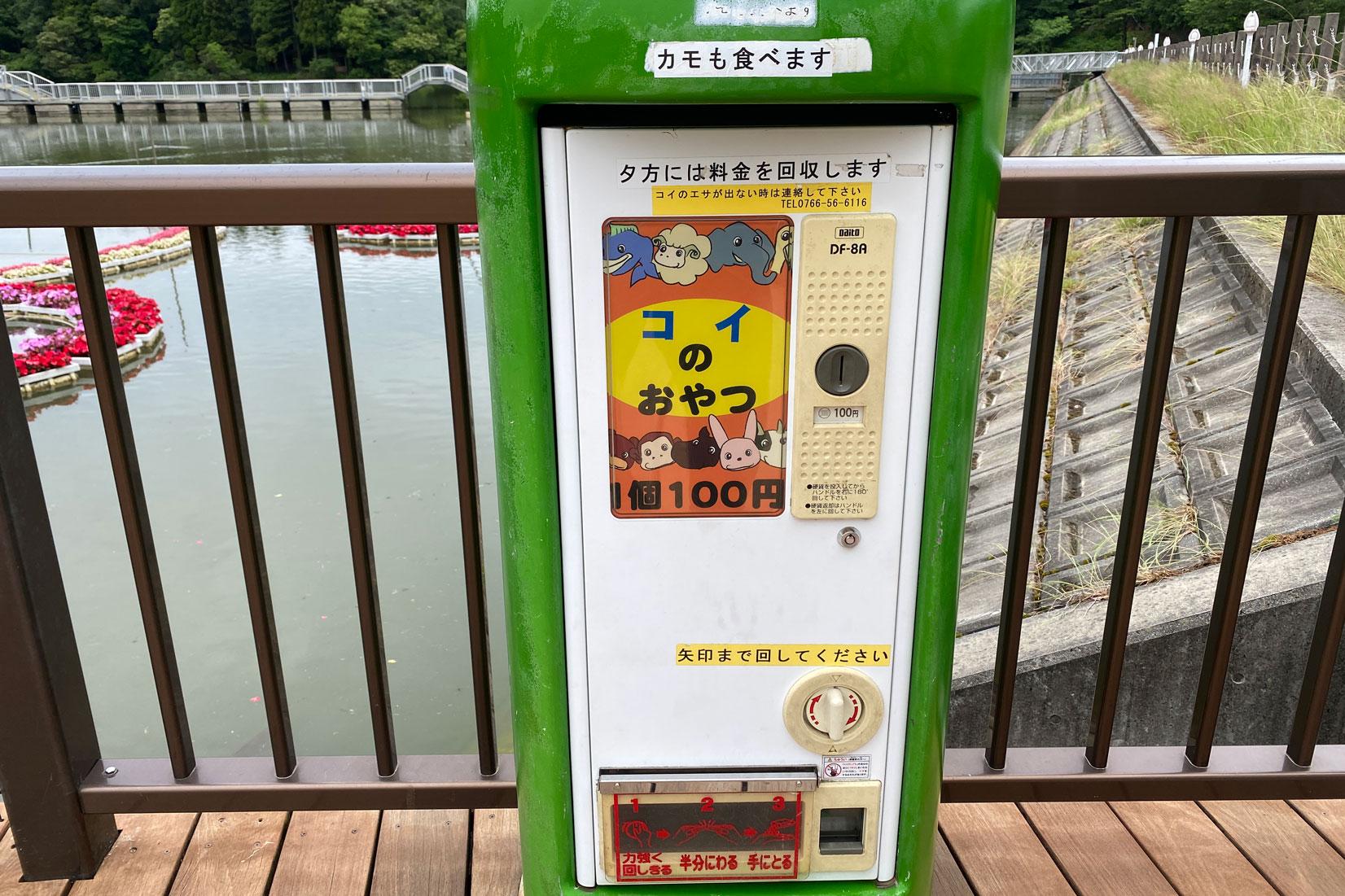 園内数箇所に、写真のような「コイのおやつ」を売っているスタンドがあります。