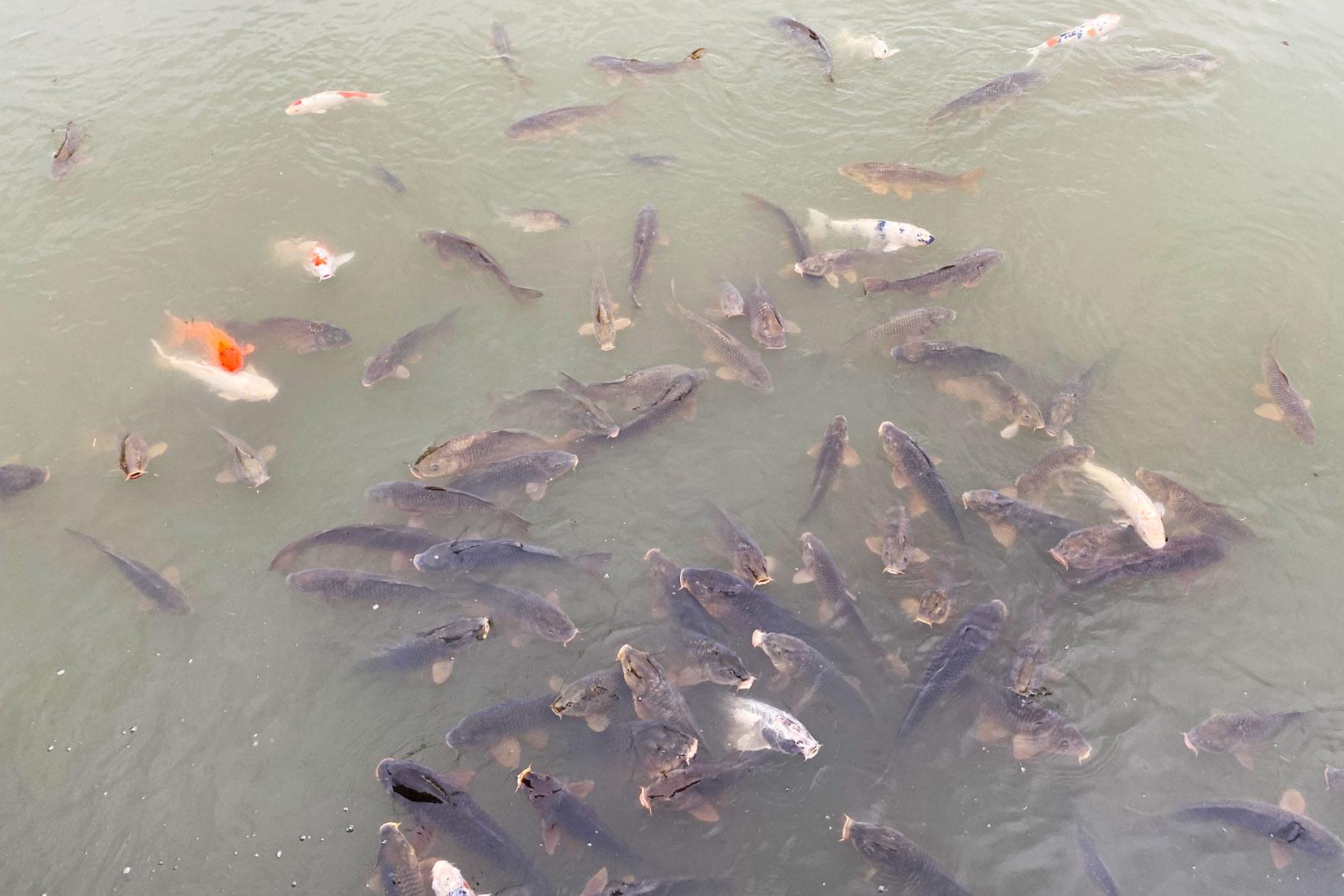 ぜひエサを買って、コイにあげてみてください。びっくりするくらい大量のコイが集まってくるので、衝撃を受けるはず!