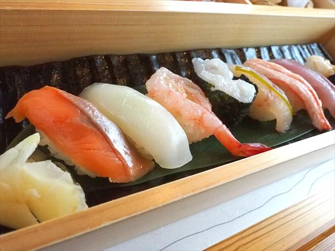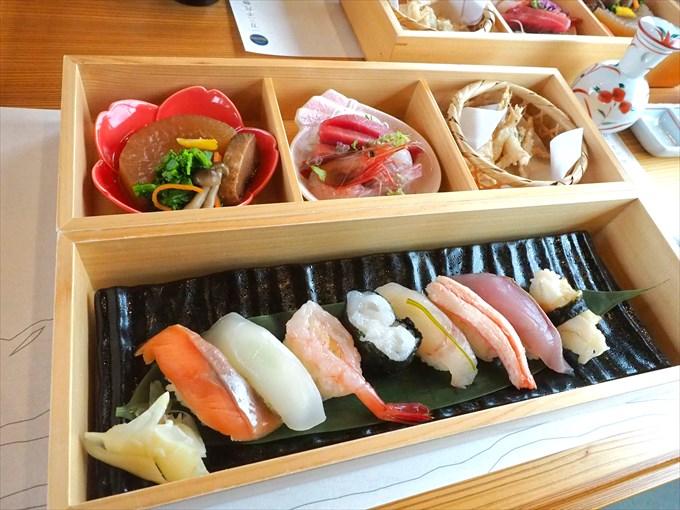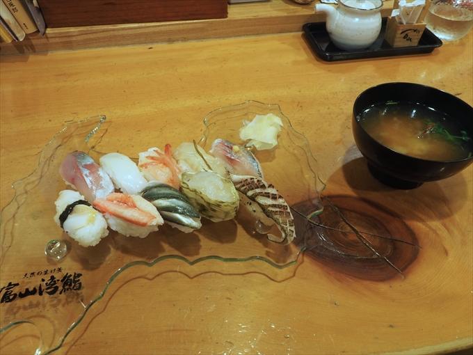 1.「天然の生け簀(いけす)」富山湾の旬の魚を使った寿司が10貫。