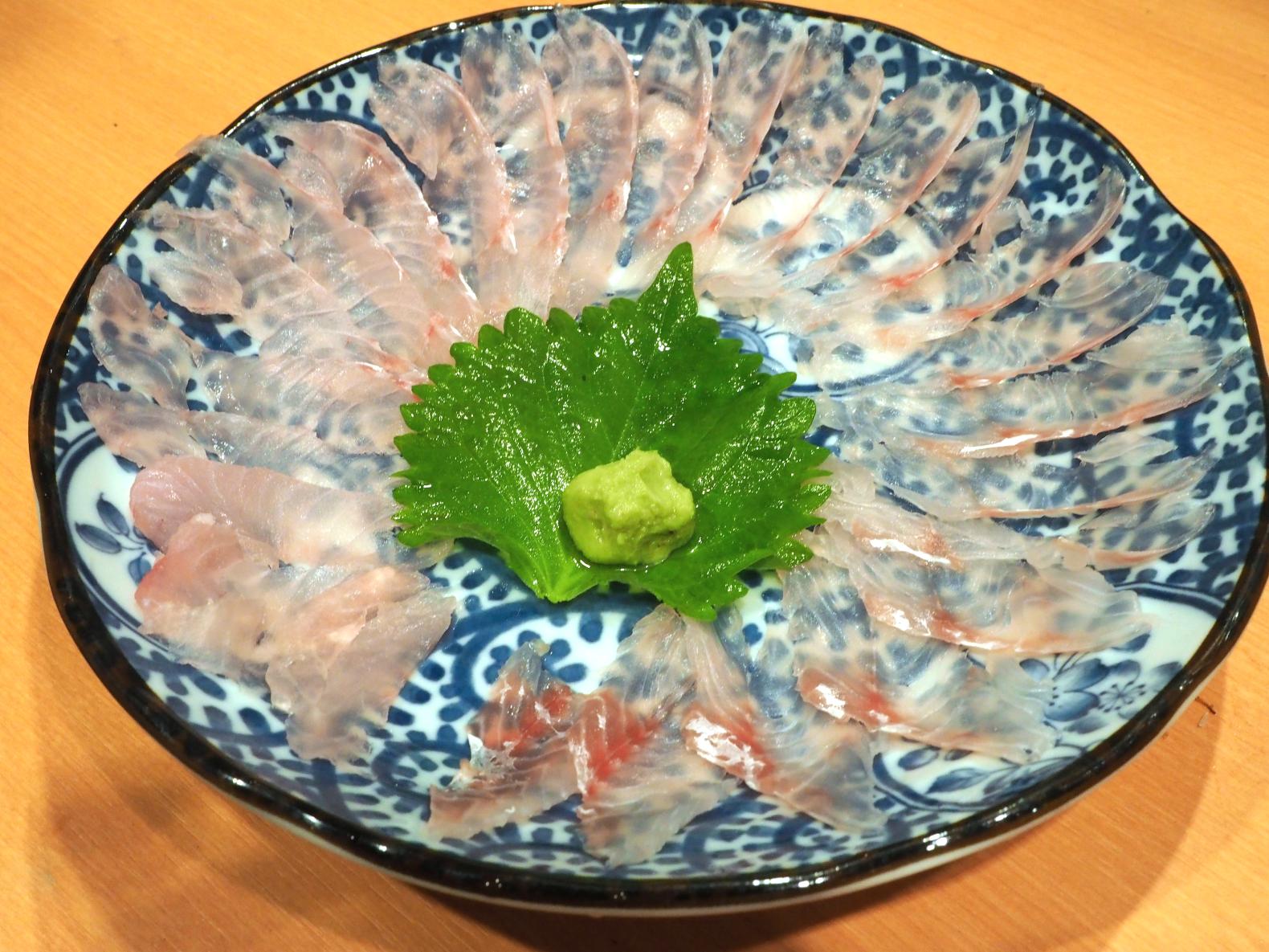 この薄造りはいつも出来るわけではないので、メニューにあったらラッキーだと思うようにしています。