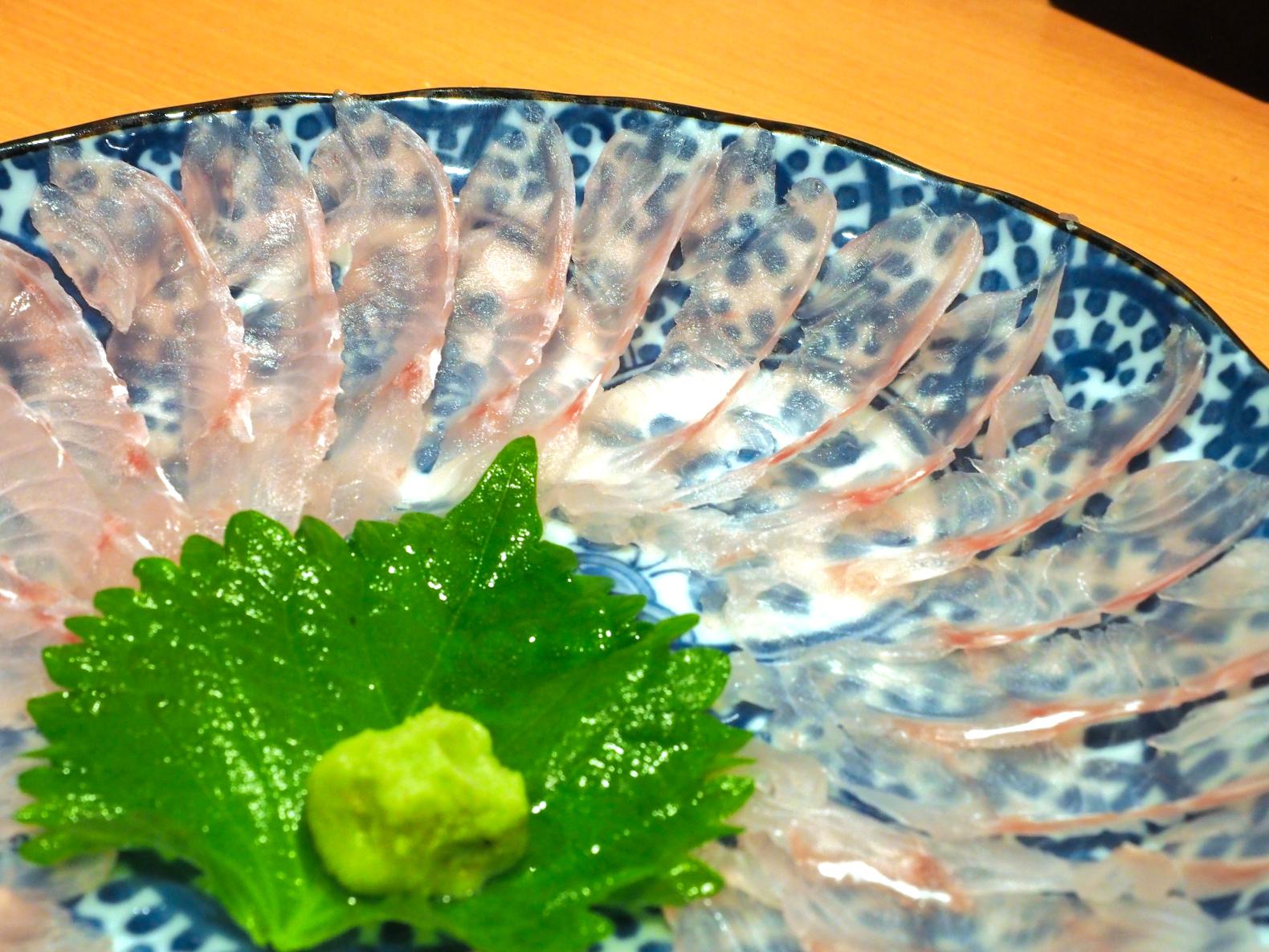 カワハギも肝と一緒にいただけます。カワハギの肝の旨さは格別なものがあり、個人的には「お手頃なのに最高に美味しい魚」の代表格ではないかと思っています。