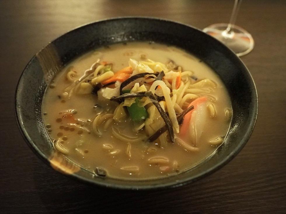 BARでちゃんぽん麺とは···(笑)でも、これがまたしっかり美味しくて酔っ払いの胃袋を鷲掴みにしてくれるのです。