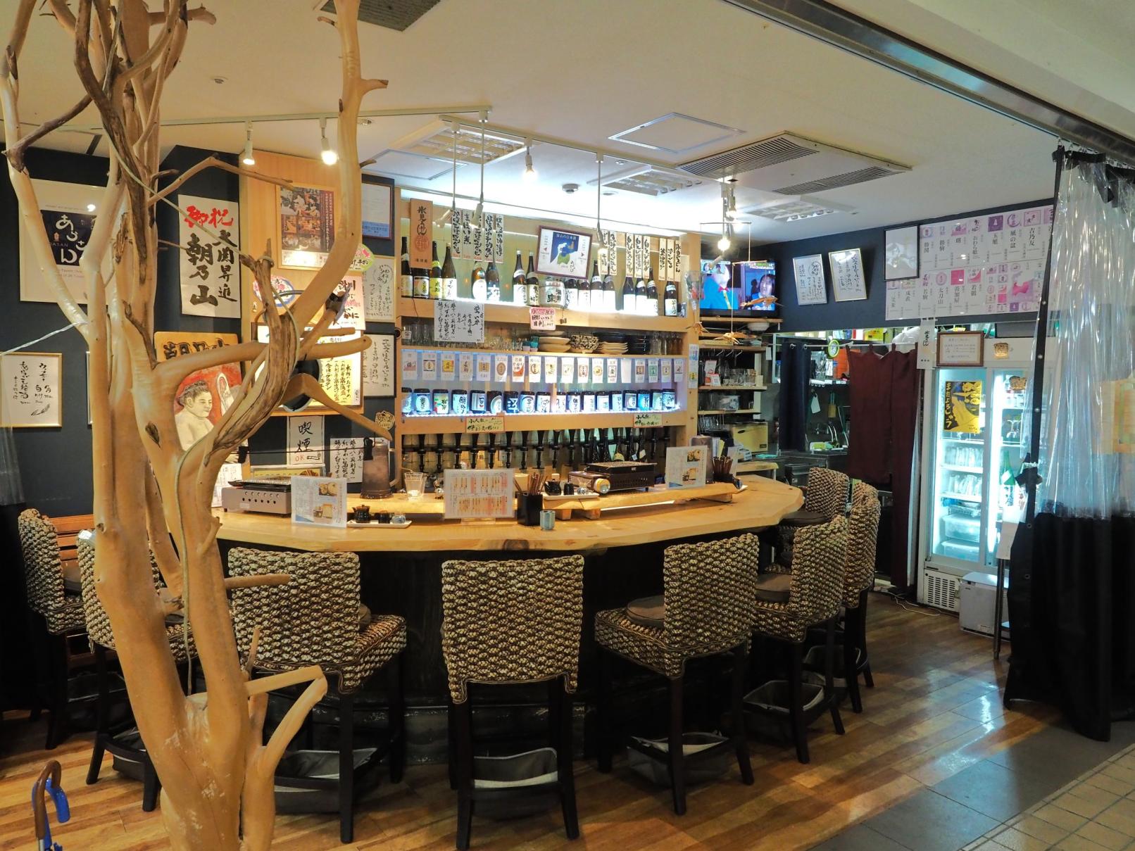 壁の仕切りがないので開放感と入りやすさは抜群で、県外のお客さんが多いのも頷けます。一人飲みにもやさしいお店ですよ。