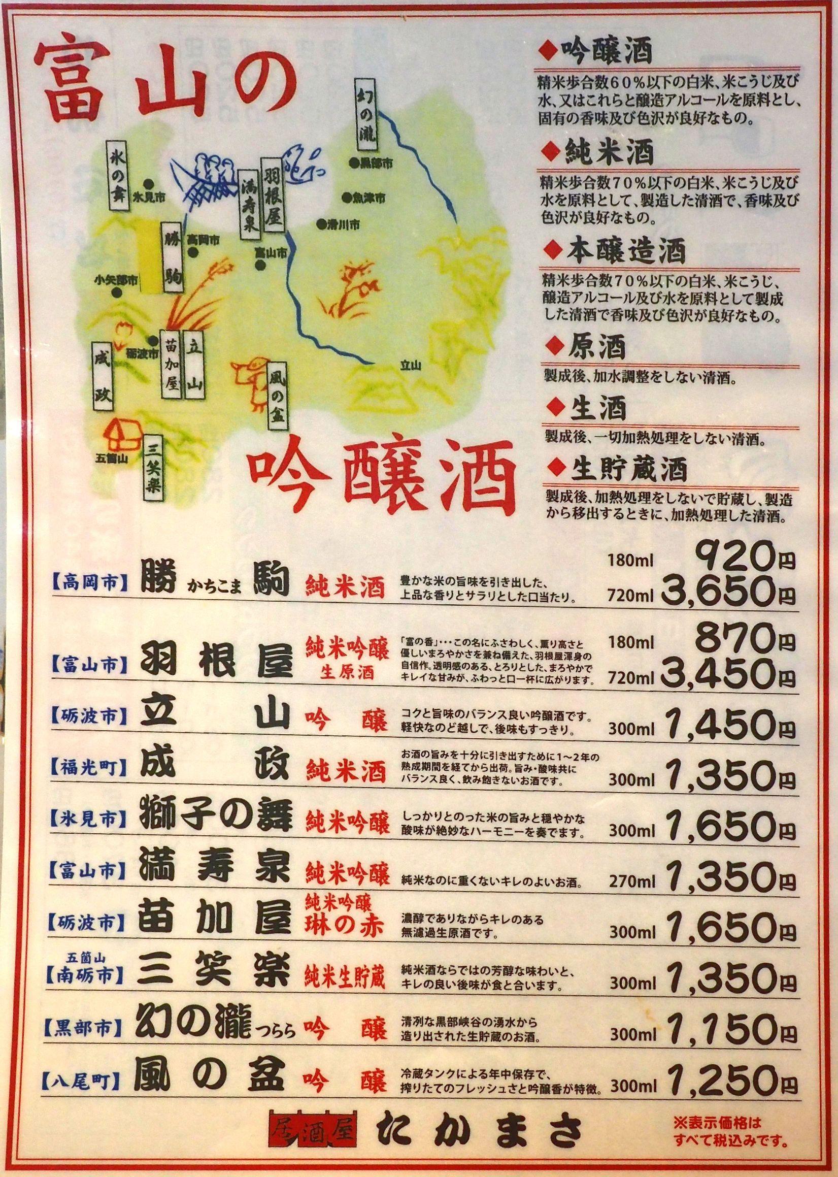 富山の地酒も多く揃っていて、やはり富山の食べ物には富山のお酒が合うということですね。