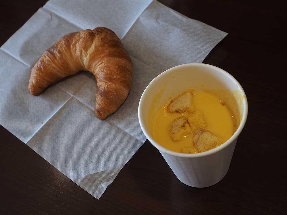 スイス伝統のクロワッサン「バターギッフェリ」と「季節やさいのポタージュ」はとってもお腹に優しくて、ぼくの胃袋はさらなる活動を要求してきました。