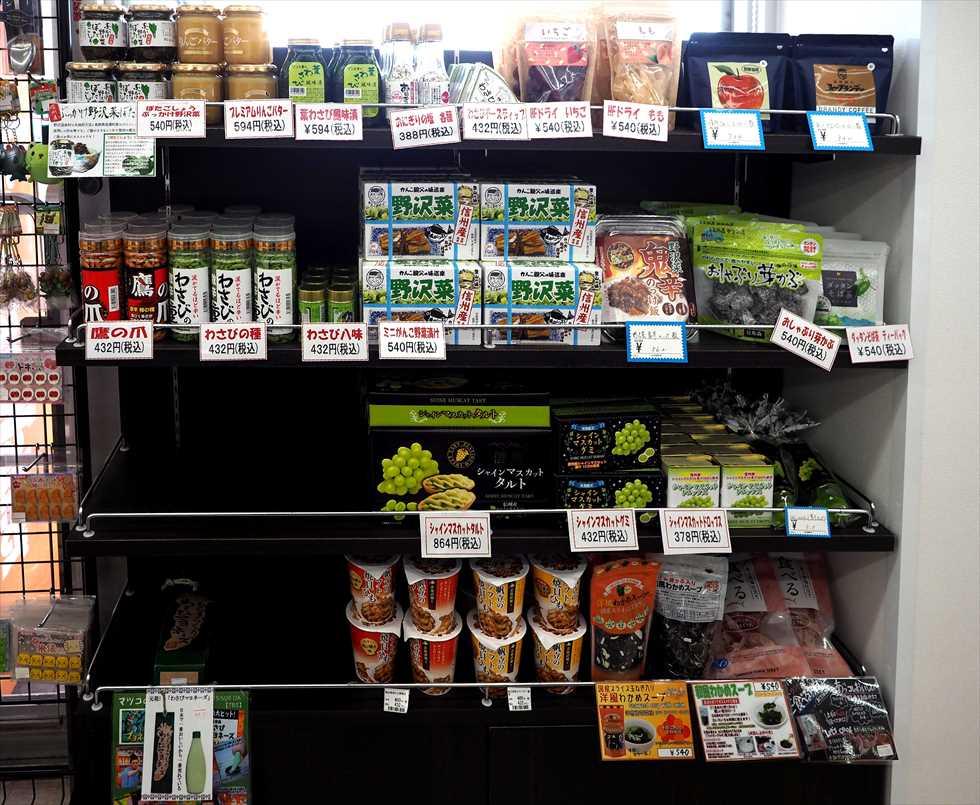 越中境PA下りは「富山→新潟方面」という位置がら富山の特産品が目立つのですが、越中境PA上りは「新潟→富山方面」ということで、富山・新潟・長野の特産品が購入できるのは大きな魅力といえるでしょう。