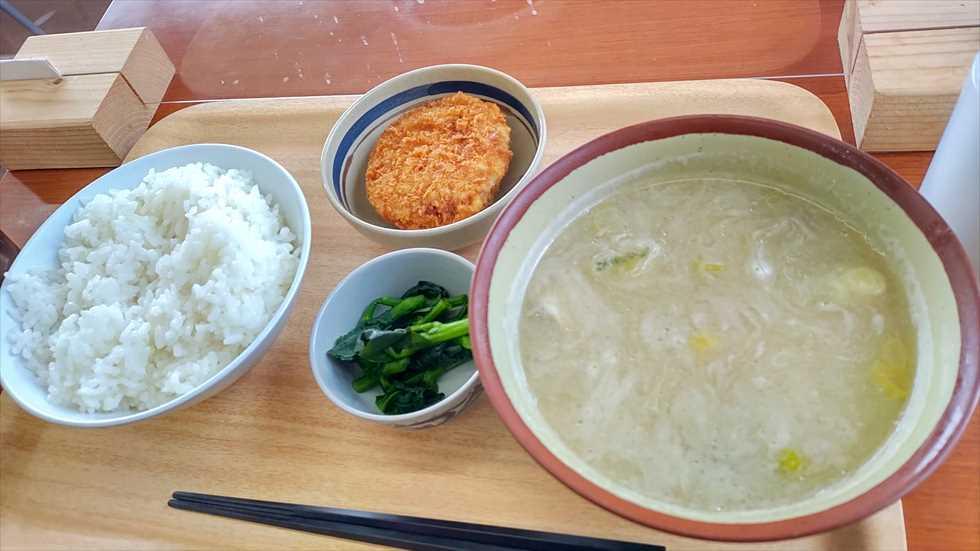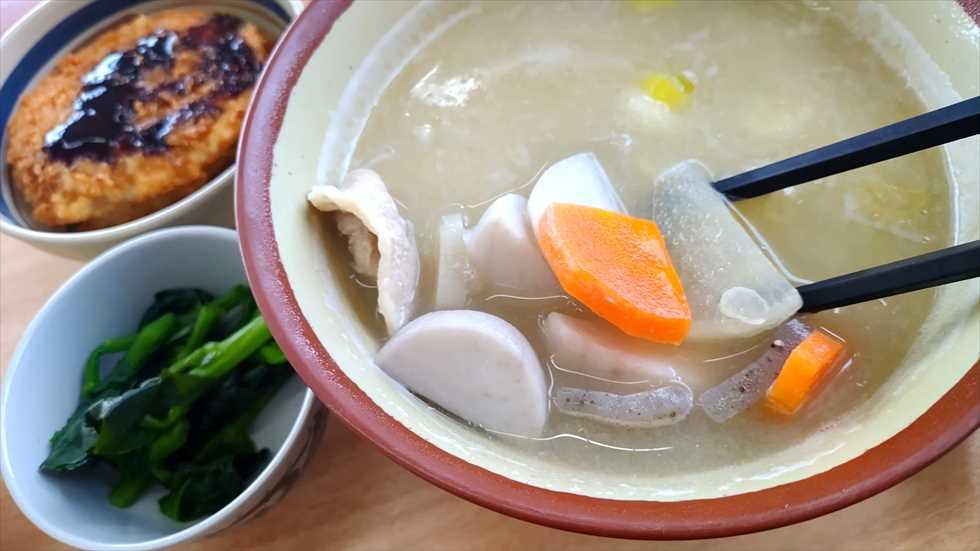 豚汁はとっても具だくさんで野菜がたっぷりとれます。実際は画像よりも全然いっぱい具が入っててボリューム満点です。