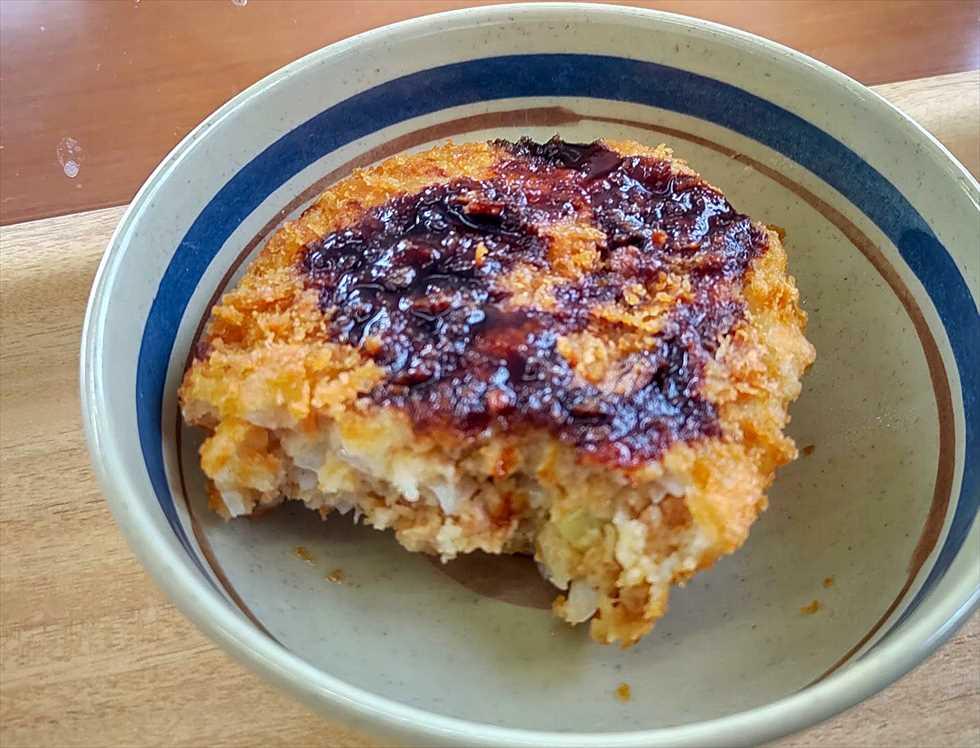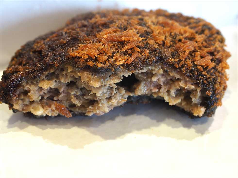 衣は厚すぎずカラッと揚がっていて、噛みしめるとジューシーな肉汁が溢れ、細かく刻まれた玉ねぎのサクサク感がなんとも心地よいのです。