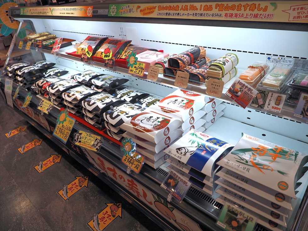 こちらの有磯海SA上りは下りと同様に富山の名産「鱒の寿し」が豊富に揃っていて、思わず何か買って帰りたくなるんですよね。