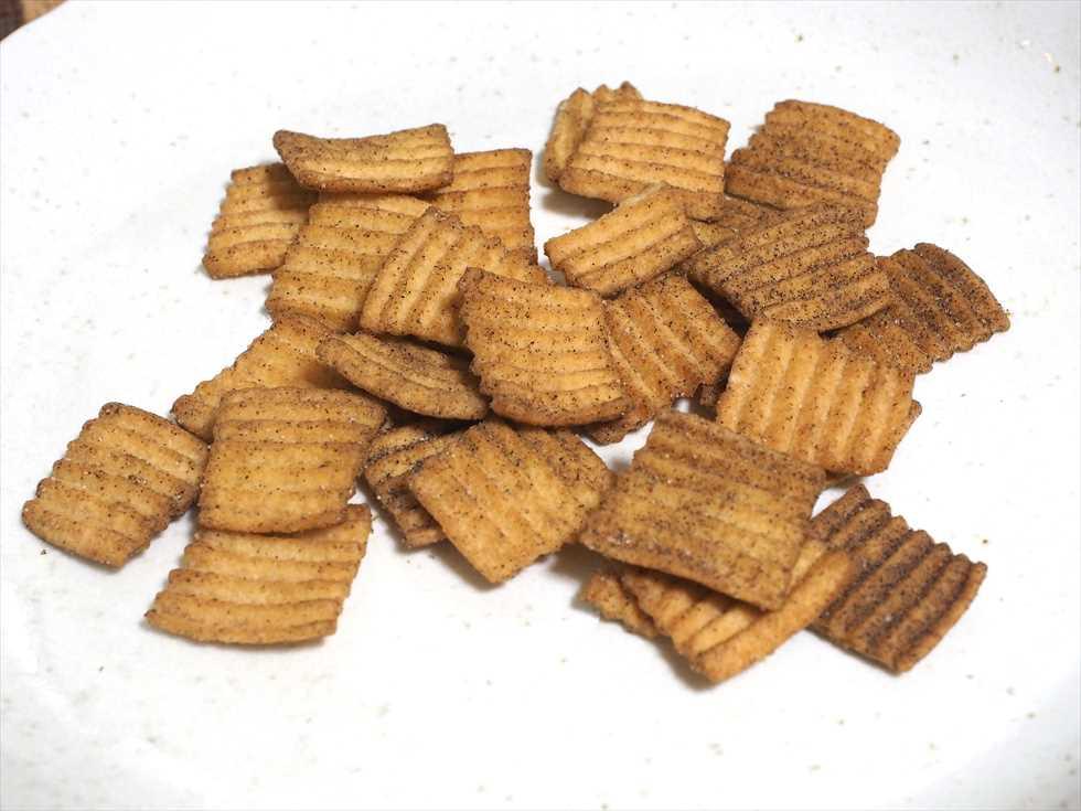 おからチップはザクザクっとした歯ごたえが心地よく、味わいも富山ブラックなだけにパンチの効いた味となっています。