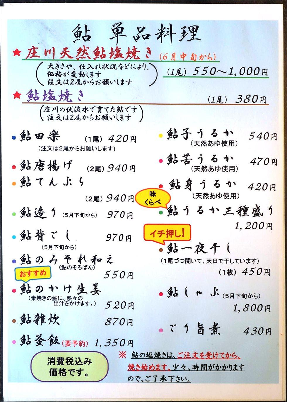 メニューを見ると、塩焼きや天ぷら以外にも実に数多くの鮎料理があることに驚かれるのではないでしょうか。