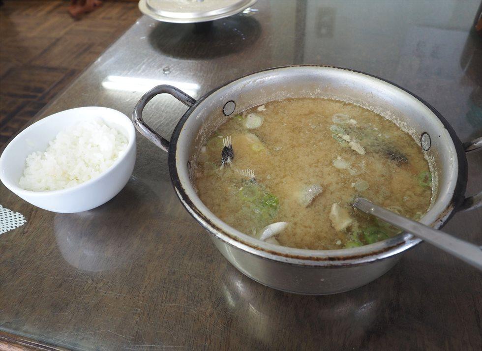 朝日町境にある「栄食堂」のたら汁は、一人前が鍋一個でどどーんと提供されます。たら一匹がぶつ切りで入っているので量が多く、一人でというよりは二人以上で食べるのがおすすめです。