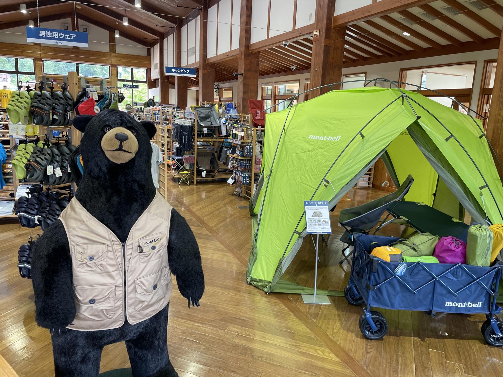 コテージやロッジのチェックイン受付ができるほか、モンベル直営店として、登山やキャンプなどのアウトドア用品が揃っています。