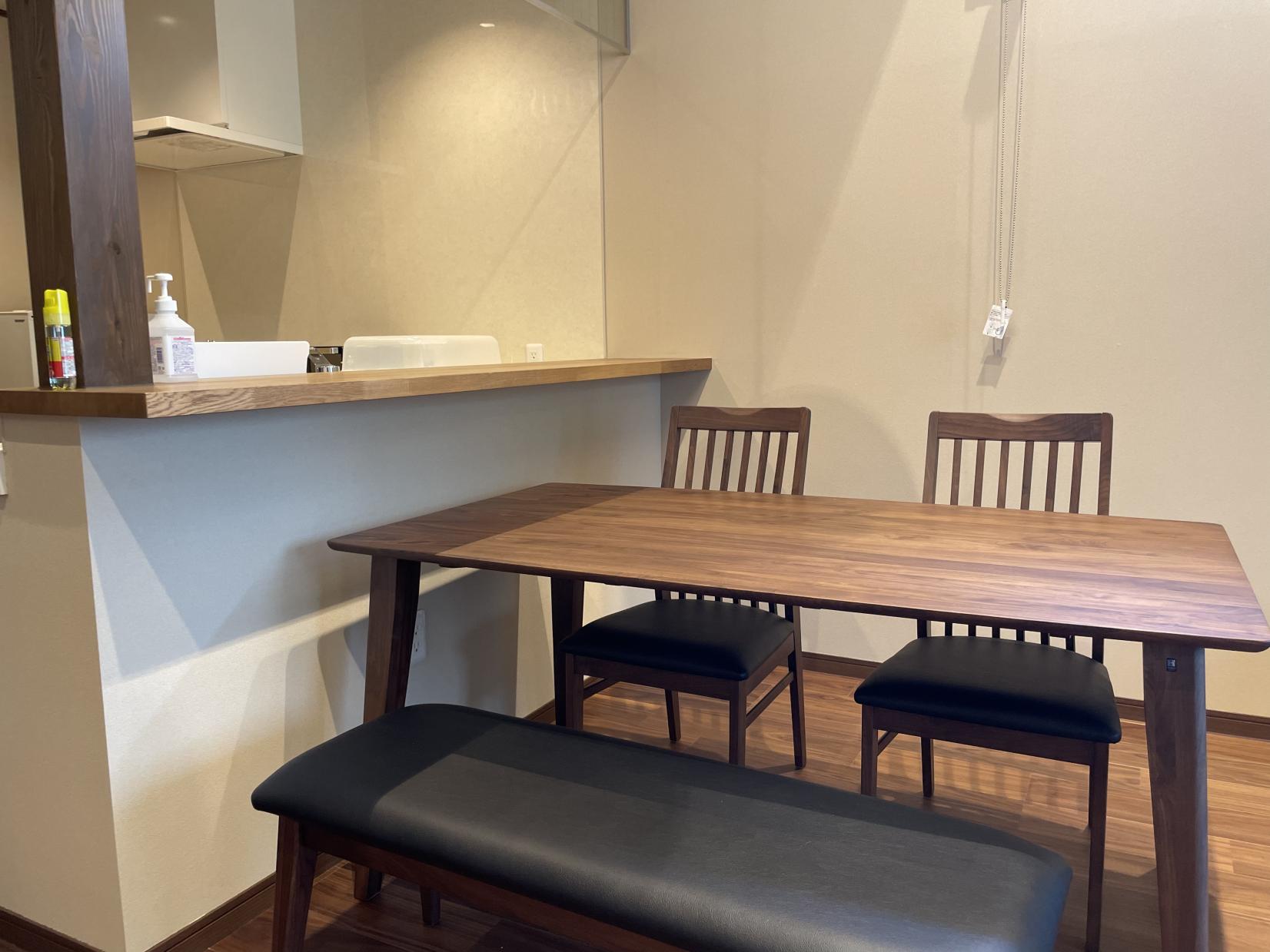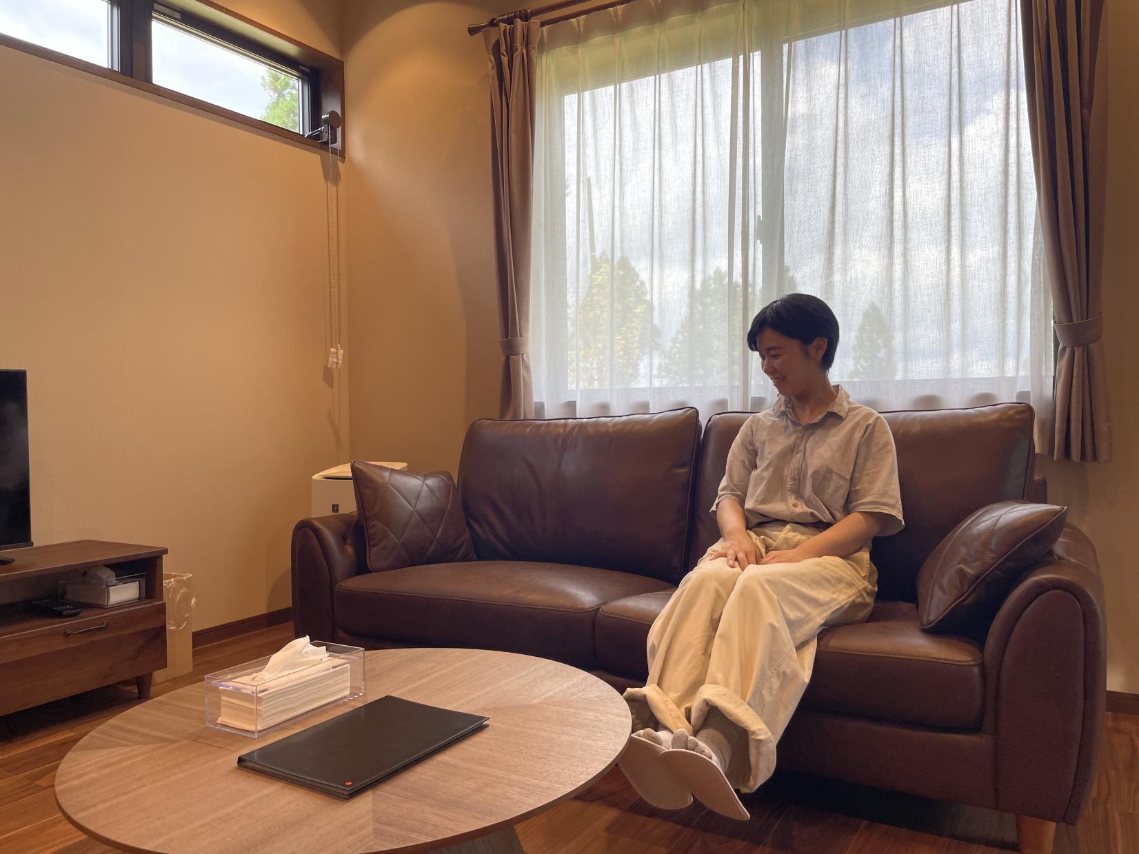 ダイニングテーブルやソファもあり、まるで自分の家にいるかのようにのんびり過ごすことができます。