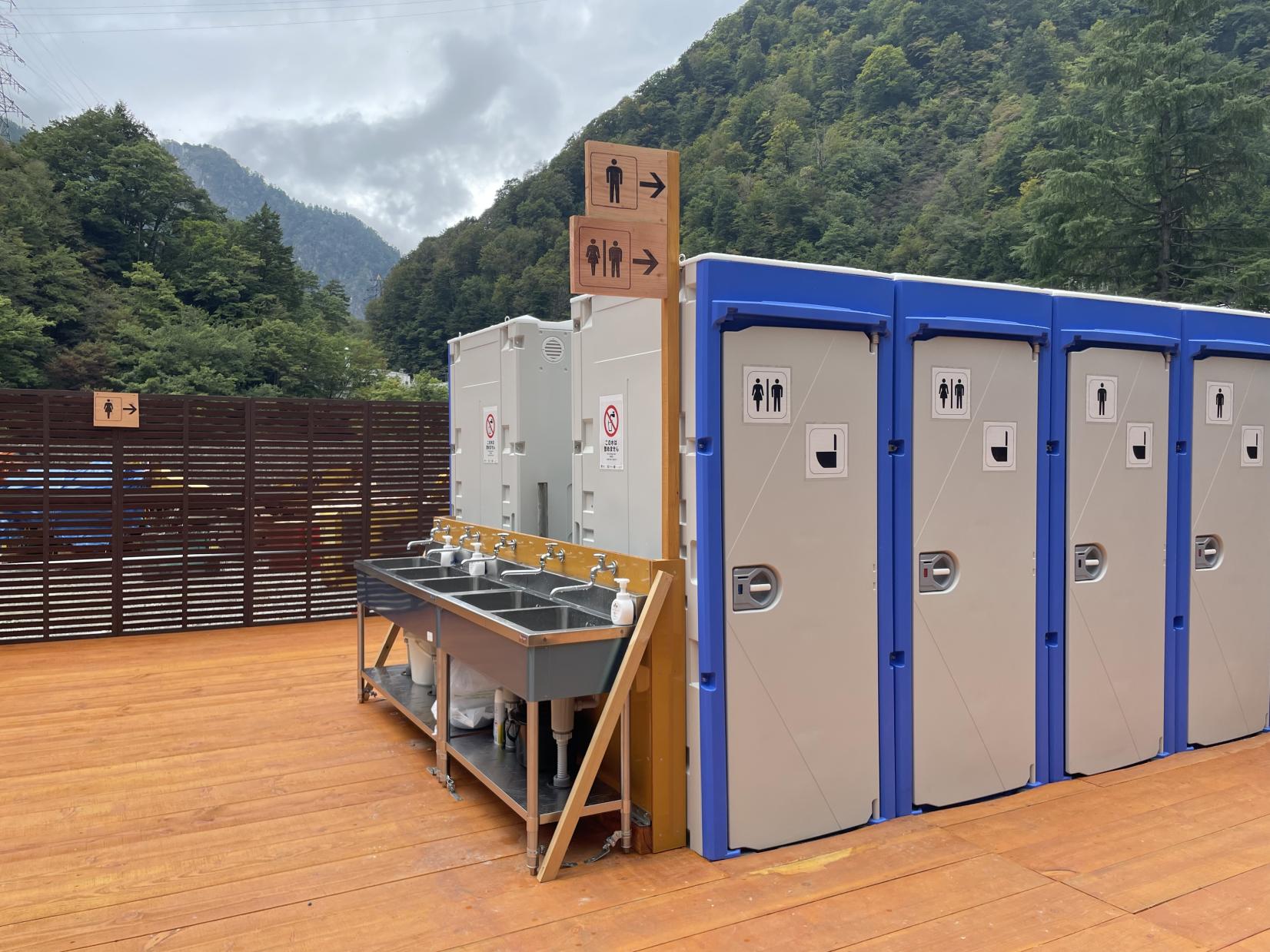 「宇奈月駅」から「猫又駅」まで乗車時間は約45分。トロッコ電車の車内にはお手洗いがありません。特に寒い季節はお手洗いも心配になりますが、猫又駅でも仮設トイレが設置してあり安心です。
