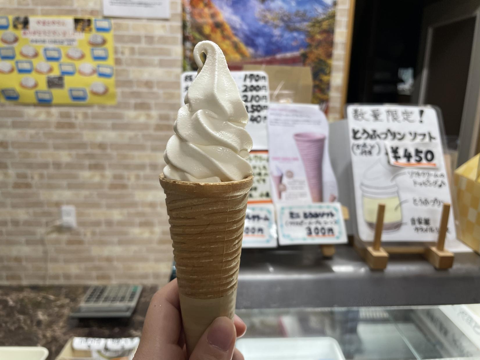 そして別腹スイーツには、老舗豆腐店「やまとや」の「ミニとうふソフト」。