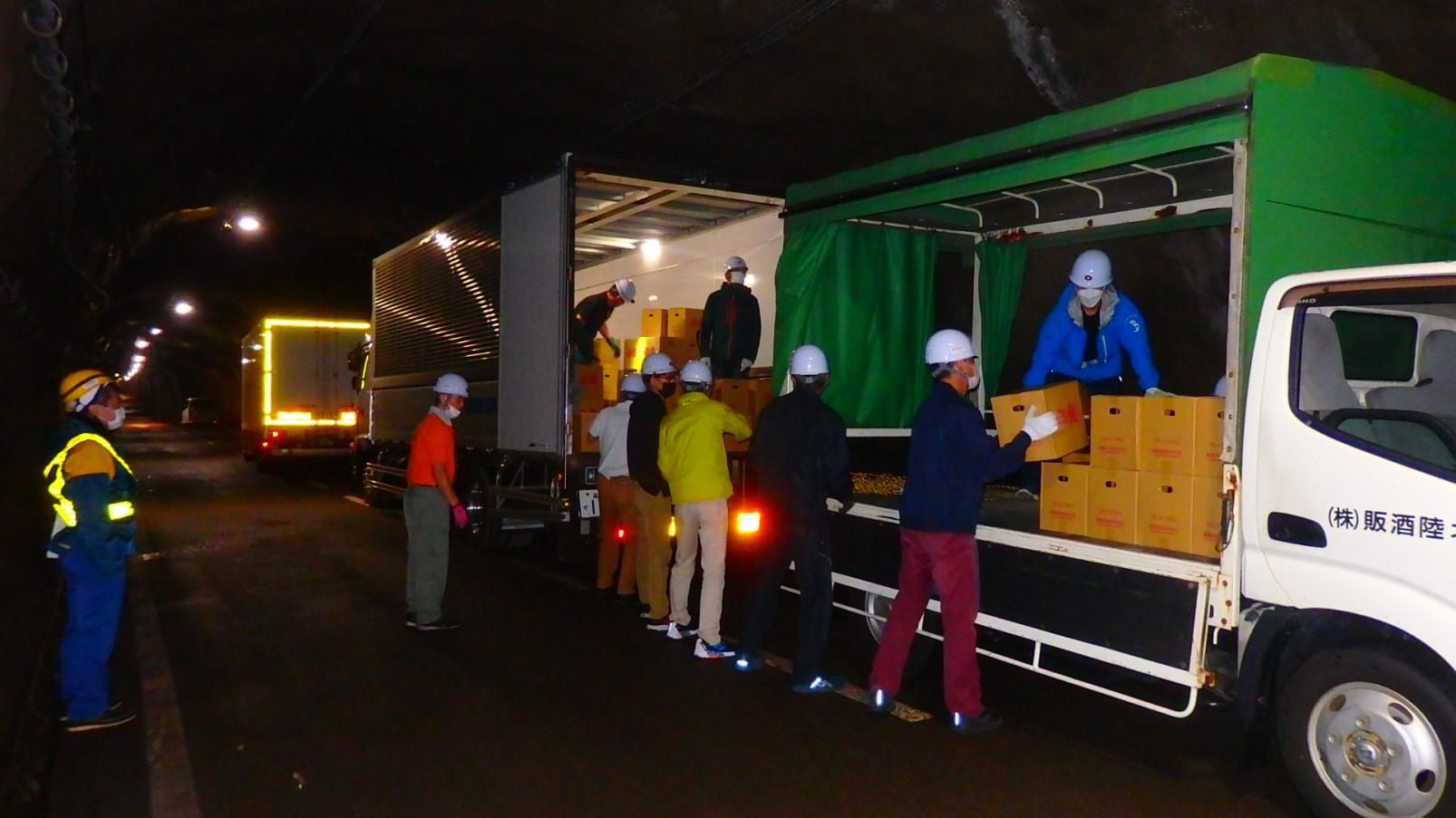 県内の宇奈月ダム、有峰ダム、成出ダム、久婦須川(くぶすがわ)ダムには、それぞれのダムの流域の水を使っている酒蔵の日本酒が貯蔵され、これまでも出荷されてきました。第4弾となる今回は、「黒部ダム貯蔵酒」として、黒部宇奈月キャニオンルートの一般開放、旅行商品化の記念商品として位置づけ、2022年から14の酒蔵の日本酒16,008本が黒部ダム内に貯蔵され、2024年に搬出が行われました。