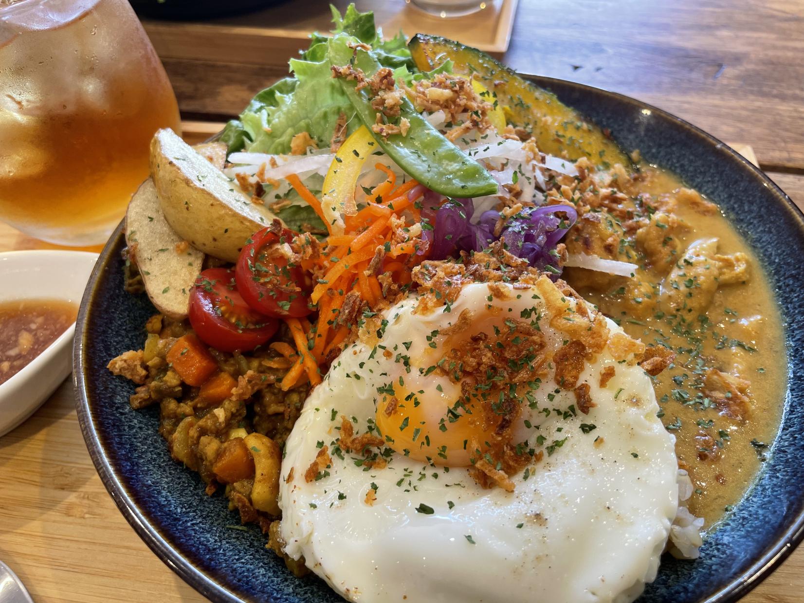 今回は、「ココナッツチキンカレー」と「野菜キーマカレー」のどちらかに選びきれない私は「2種のあいがけカレー」を注文。