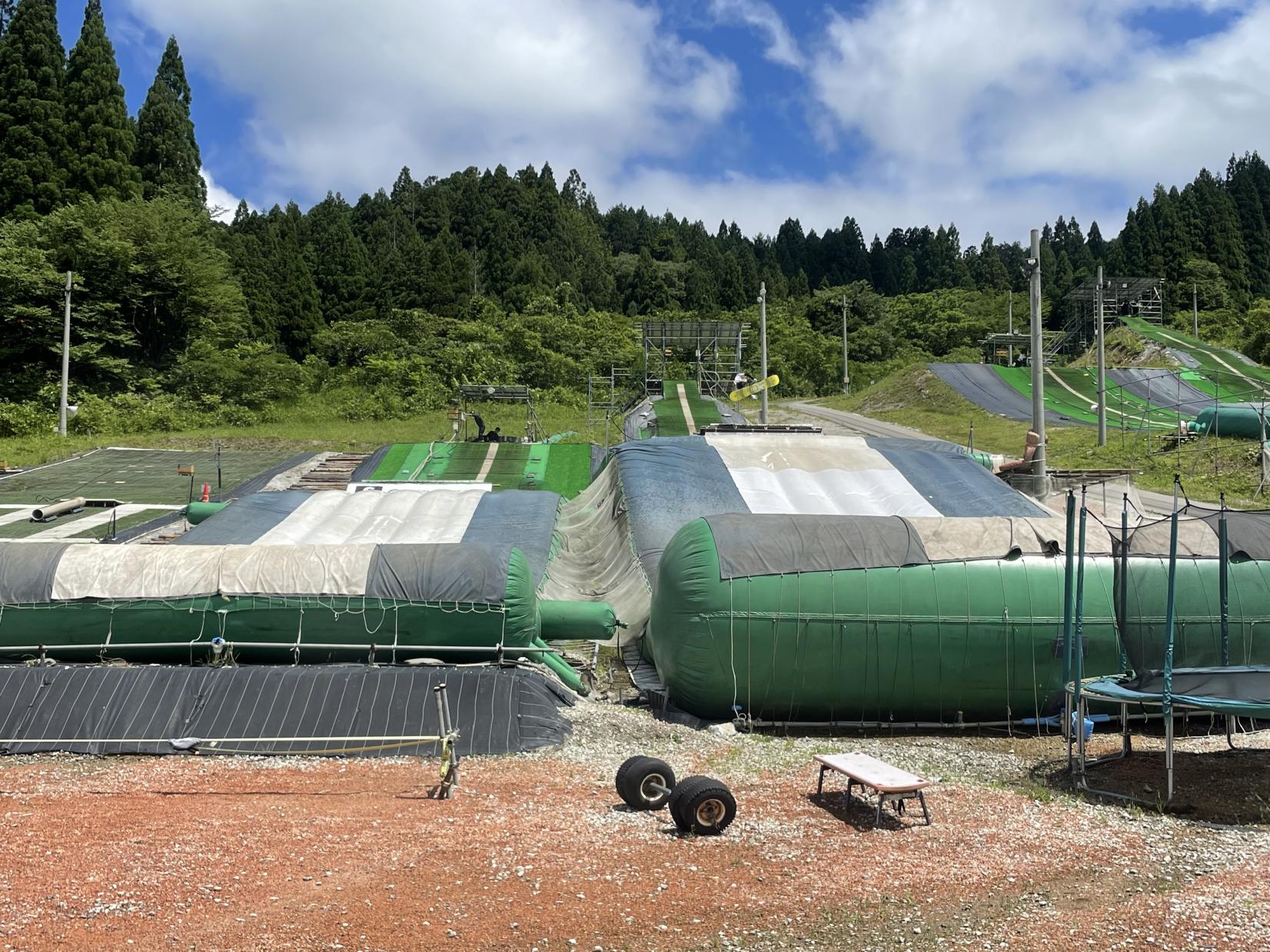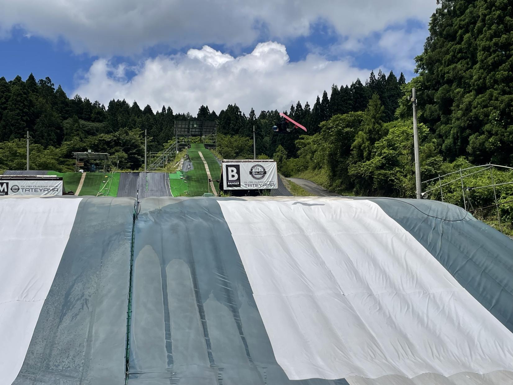 カフェの窓際の席では、スノーボードでジャンプの練習をしている様子を眺めることができるほか、ジャンプ台そばのやぐらからも迫力ある瞬間を見学できます。