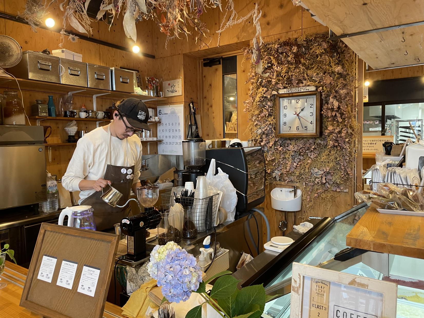 店内用のカップは、越中瀬戸焼の陶芸家「釈永陽」さんの手作りカップ。テイクアウトもできるのでドライブのお供にもおすすめです。