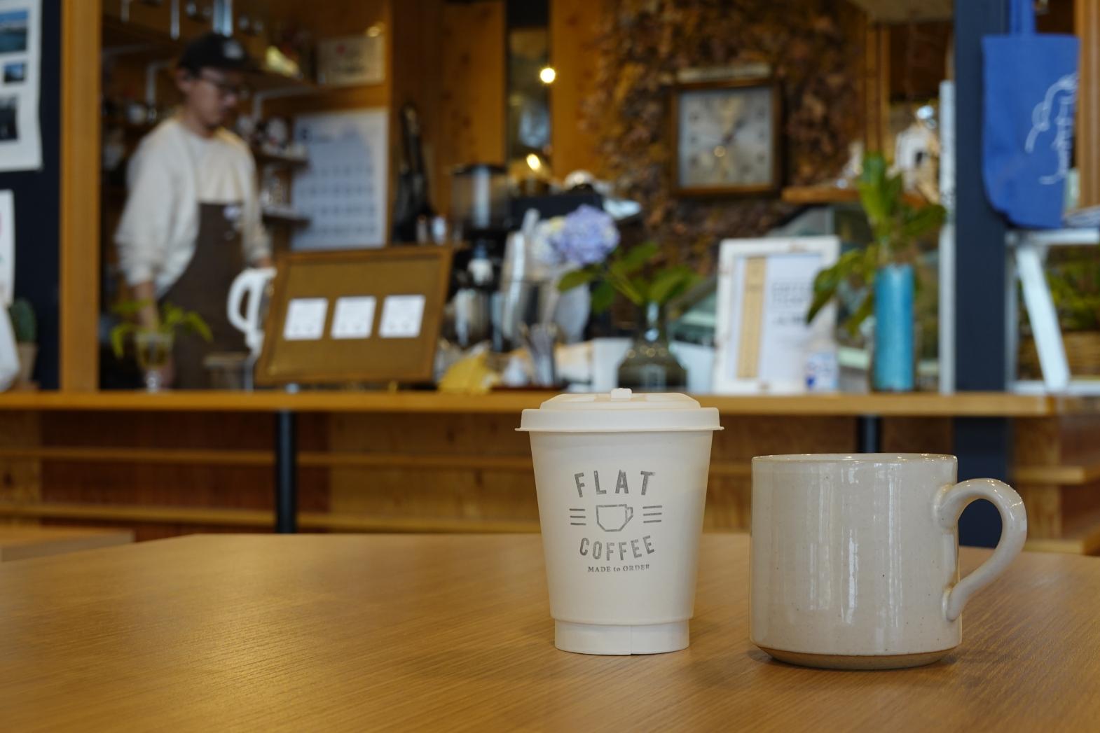立山インターから車で約5分のところに位置する「FLAT COFFEE」は、五百石駅からも徒歩すぐの「まちなかファーム」の中にあり、施設共通のイートインスペースでゆっくり休憩することもできます。