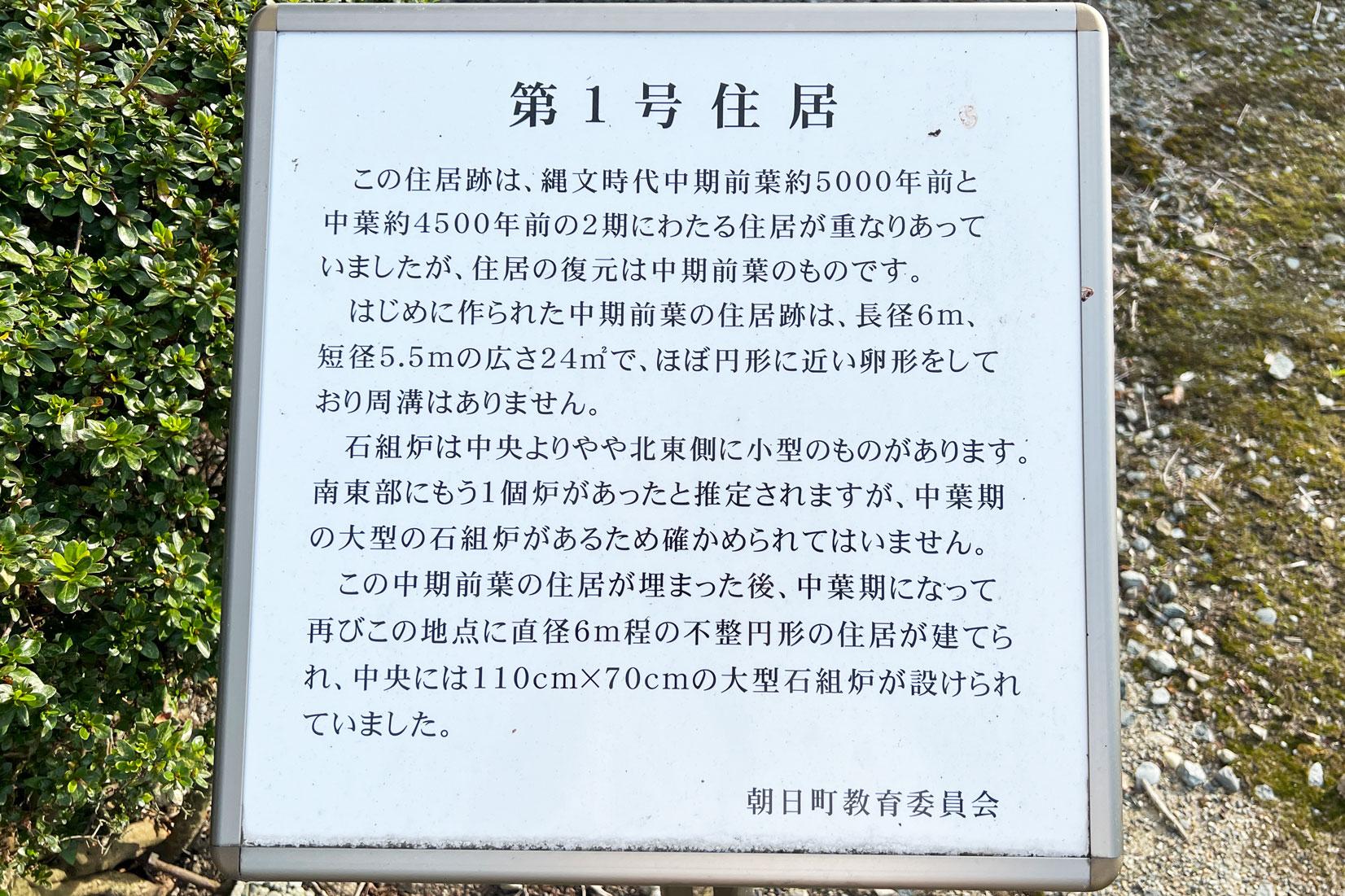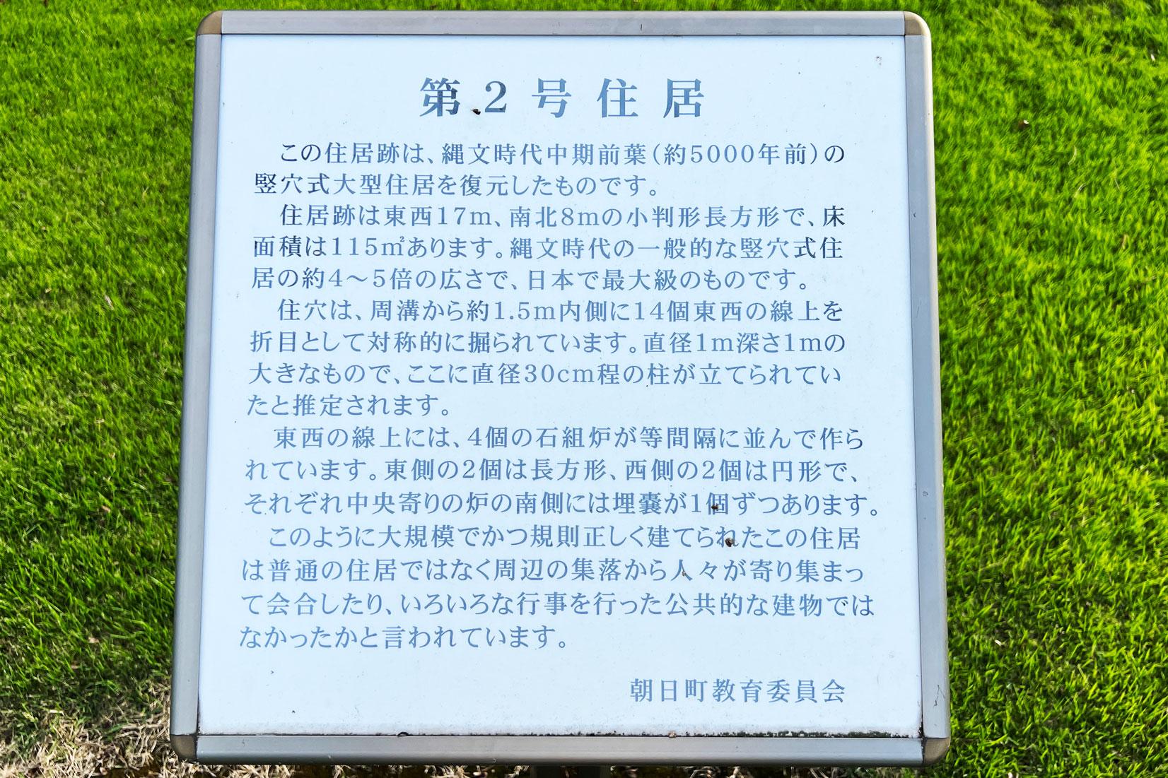 縄文時代中期の食料貯蔵や加工用の深い穴、多量の土器や石器、21棟の竪穴式住居が掘り出されて注目を集め、国の指定史跡登録を受けたスポット。