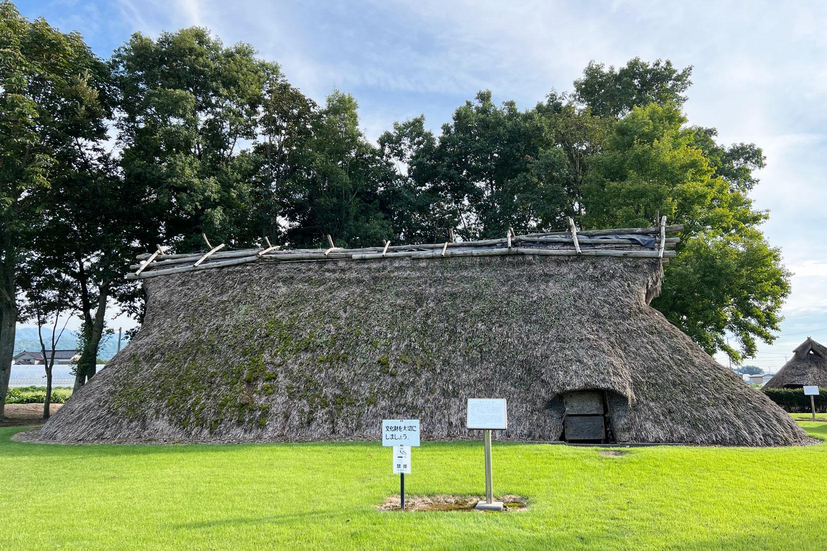 復元されている他の竪穴式住居と比べても、ぱっと見で明らかに大きいことが分かります。