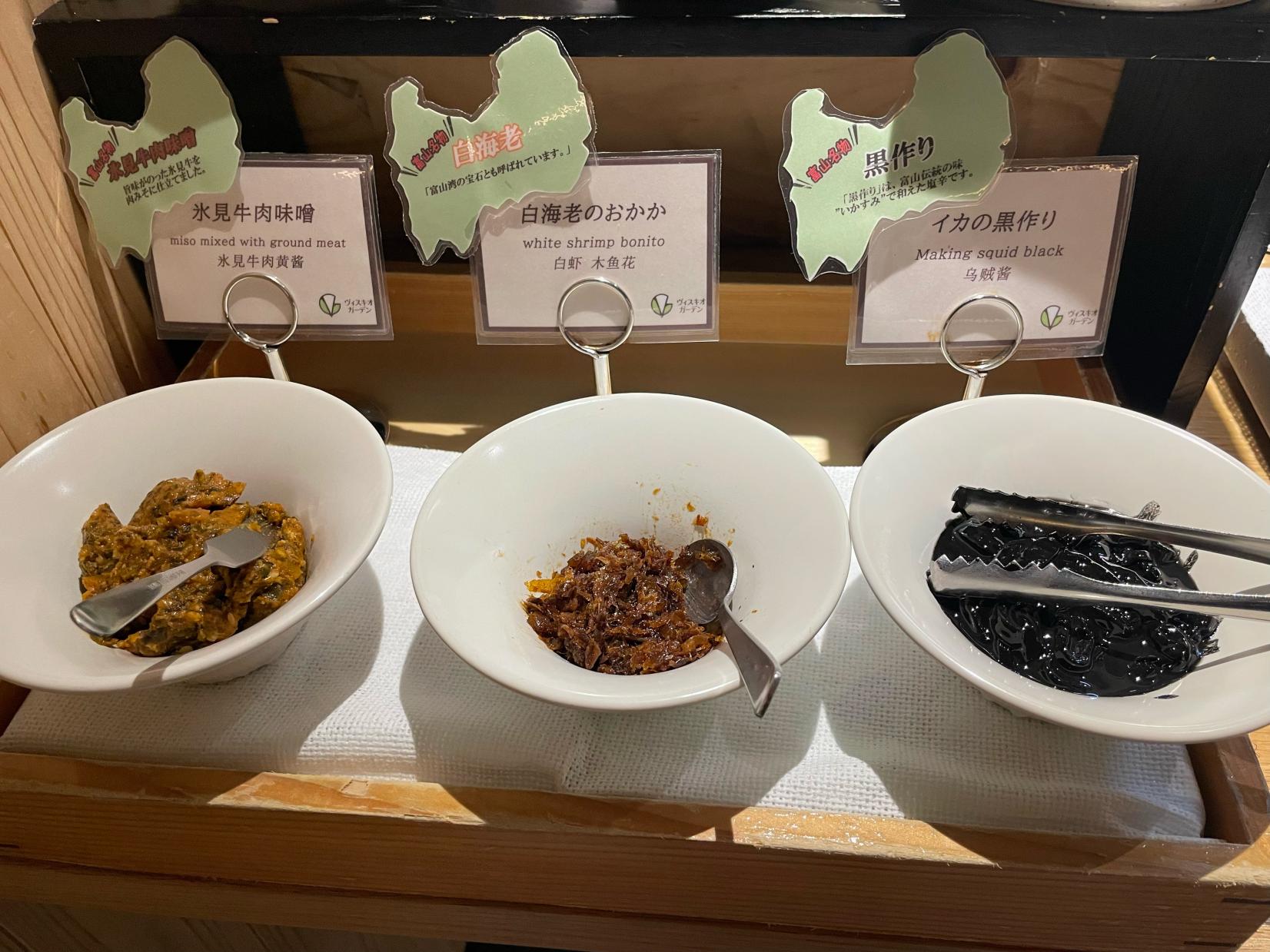 朝食ビュッフェは寿司だけでなく、富山ならではの郷土料理も豊富に揃っています。
