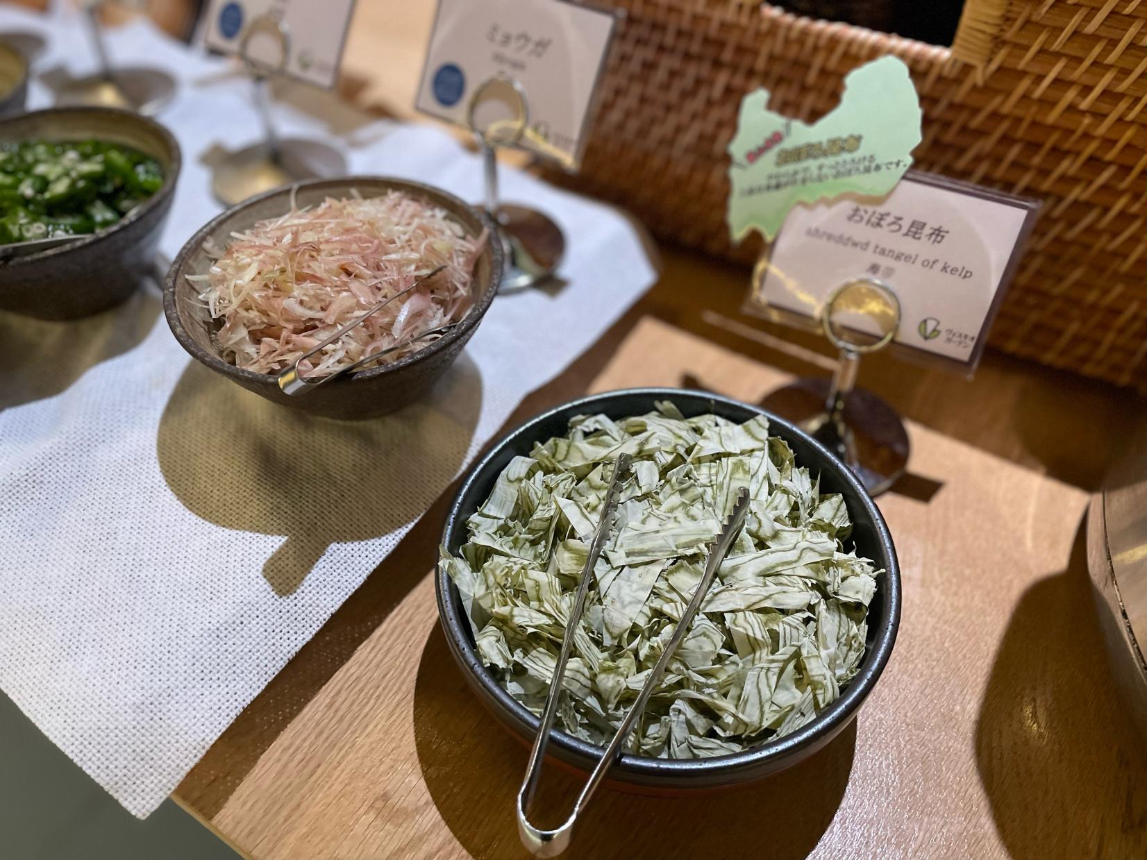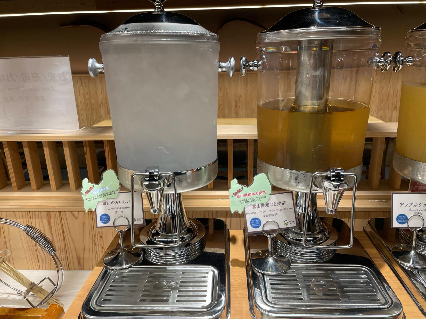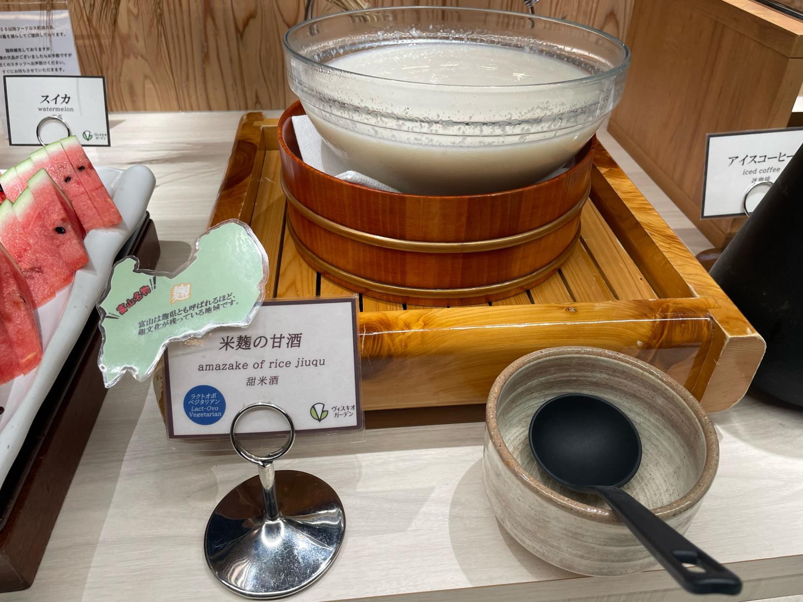 他にも富山県産の「コシヒカリ」「米麹の甘酒」「富山県産はと麦茶」「おぼろ昆布」「イカの黒作り」「氷見牛肉味噌」「薬膳がゆ」など富山ならではのメニューが盛り込まれていました。