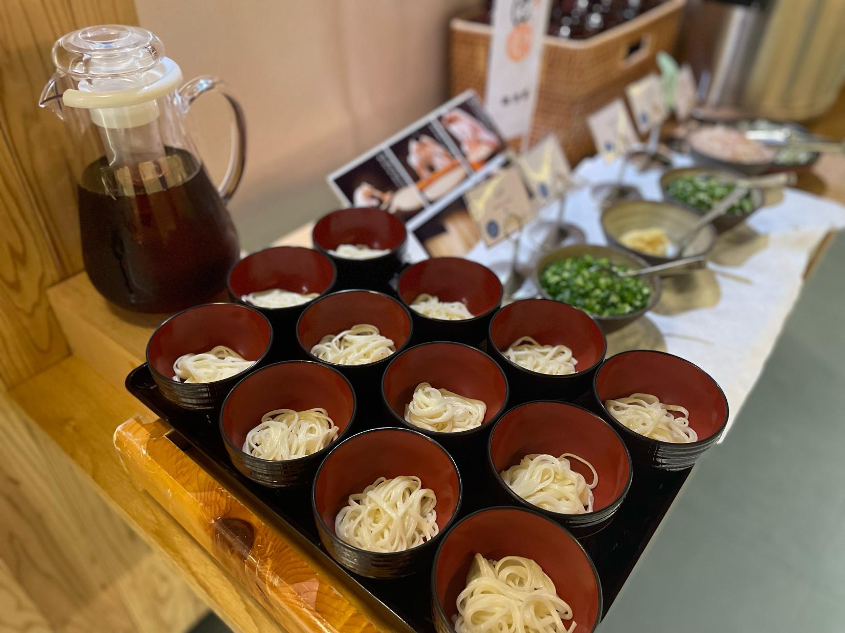 氷見市の名産「氷見うどん」。太麺と細麺があるのですが、細麺が用意されていました。