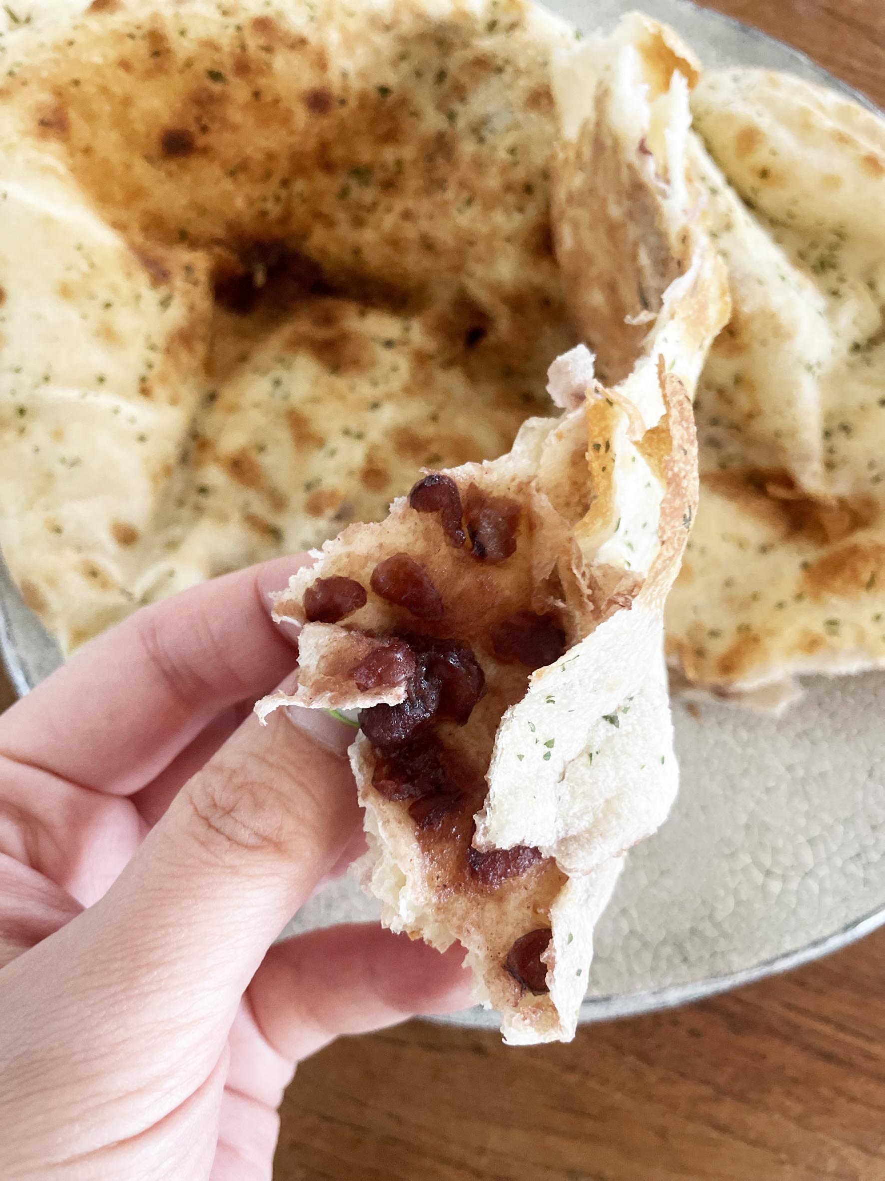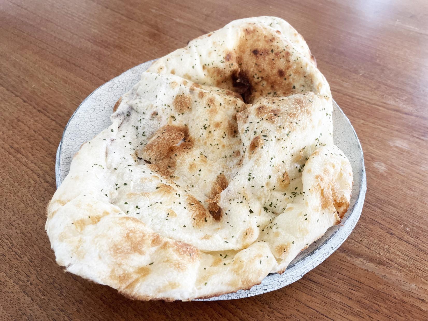 文字通り、ナンの中にアンコが入っています。カリッとしたナンに甘いアンコがナンともマッチ。子供たちも大好きなオヤツメニューです。