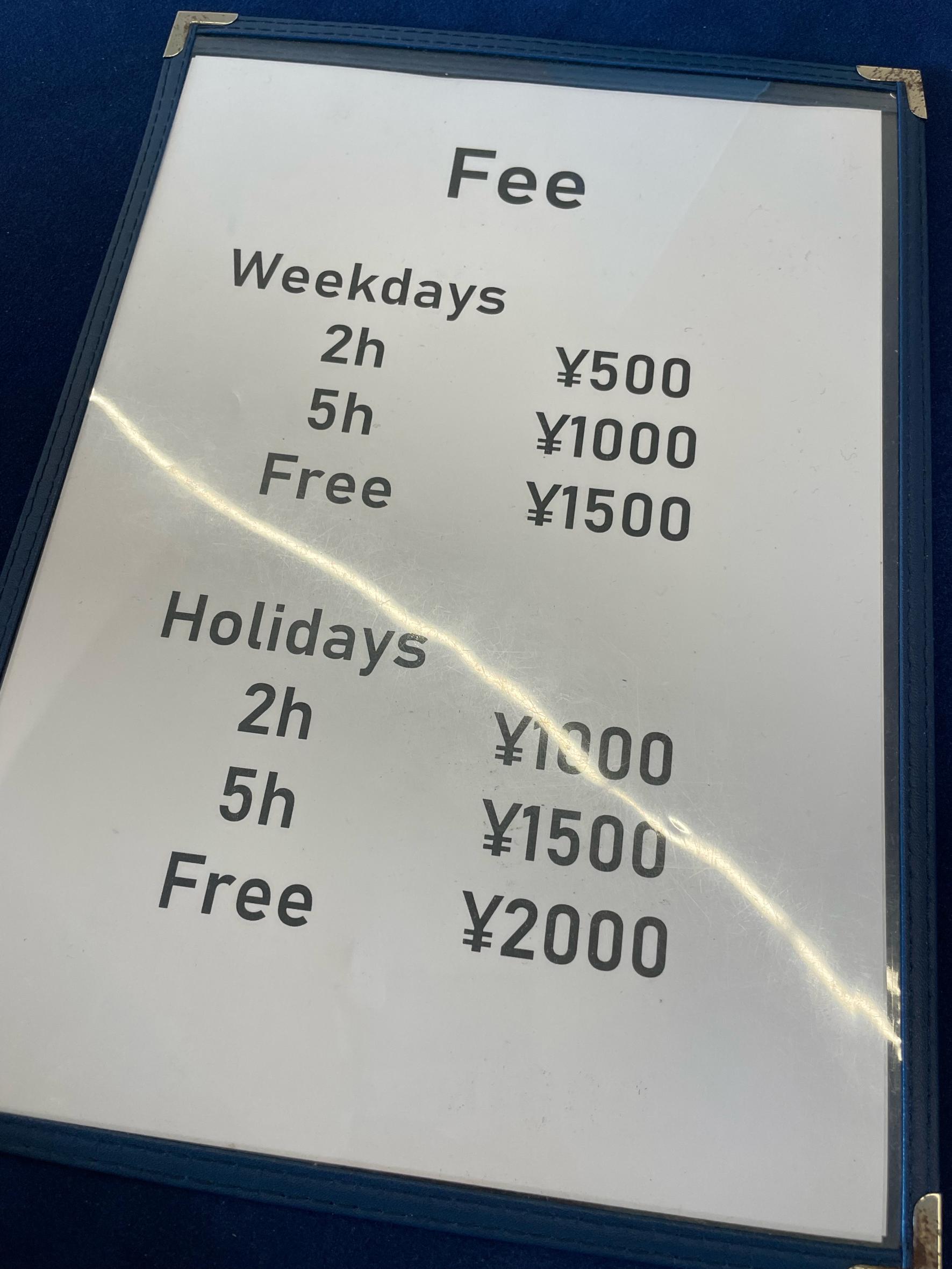 ⚫︎平日料金(1名さま)2時間500円、5時間1,000円