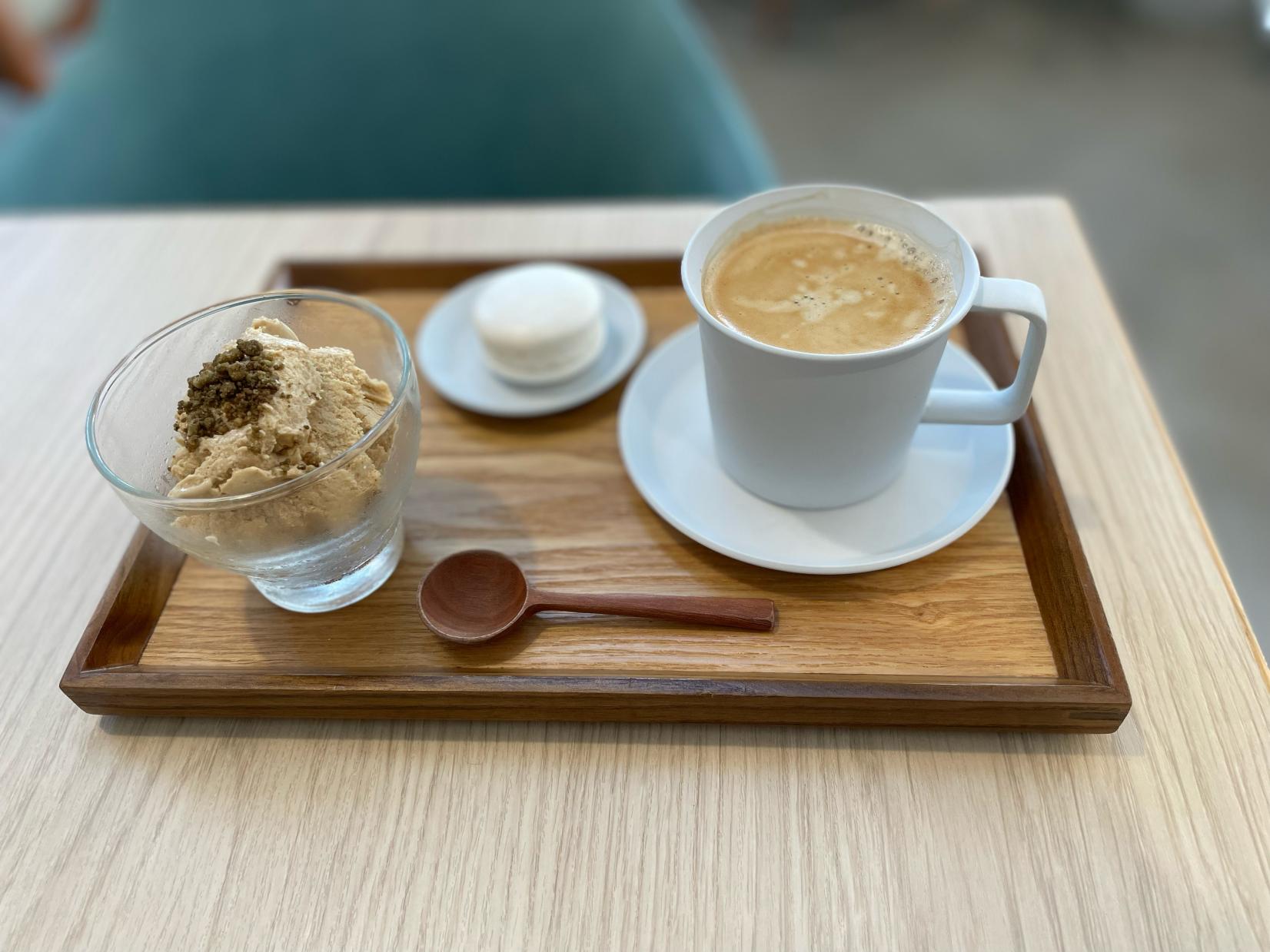 マカロンが気軽に味わえる「デザートセット」(800円)は酒かすマカロンにデザート、ドリンクが付いています。