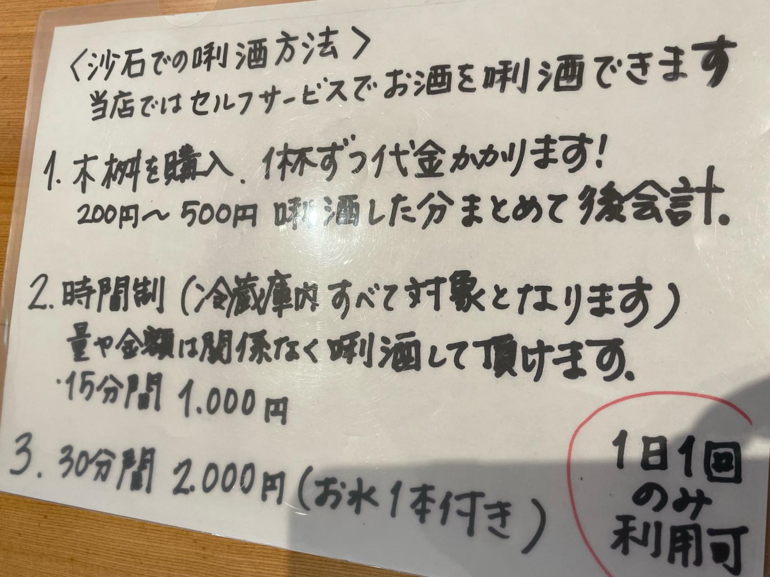 レジで木桝(220円)を購入し、瓶からセルフで注ぐカジュアルなスタイル。