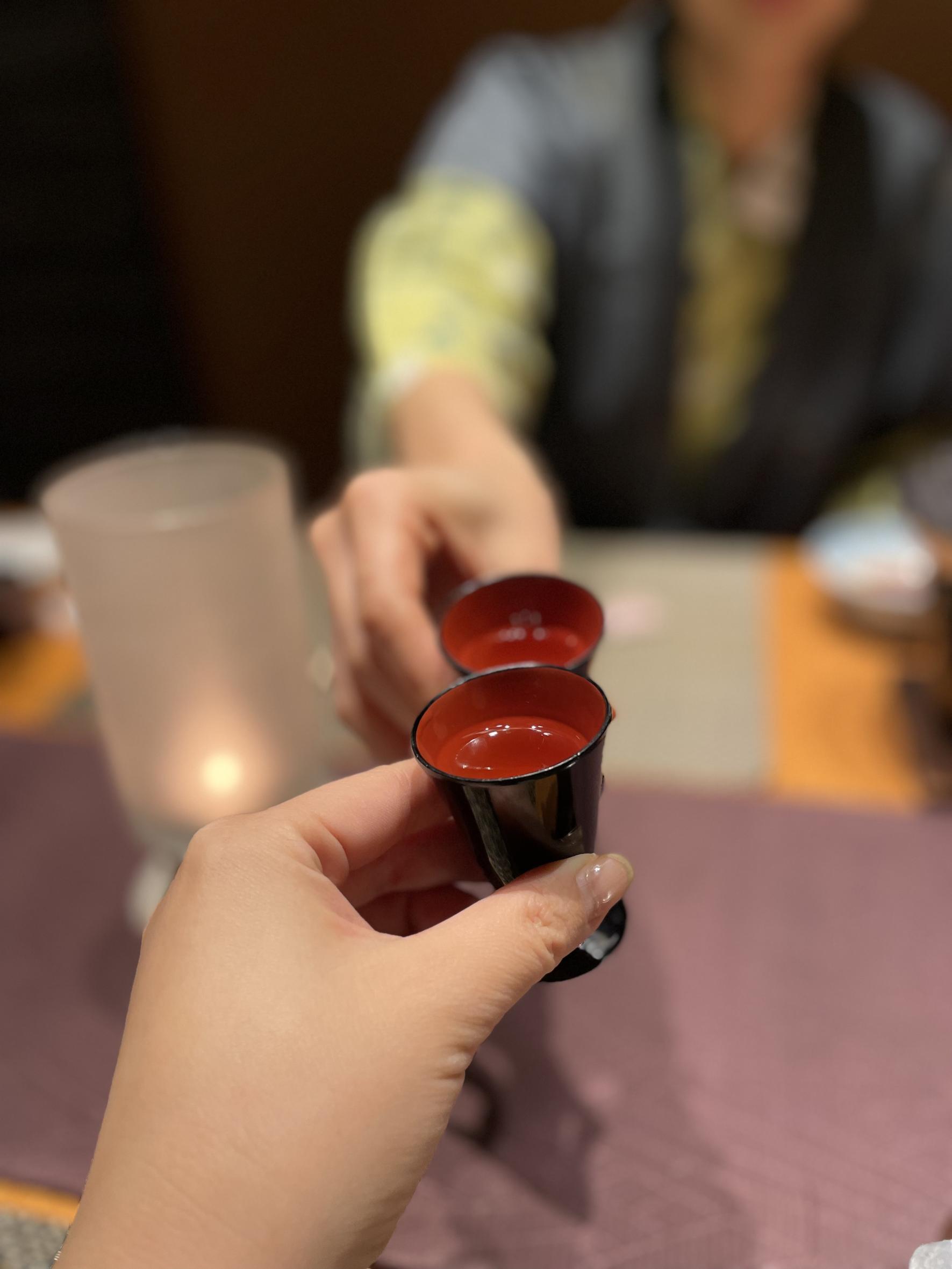 さっそく、個室限定の食前酒、梅酒で乾杯してスタートです。