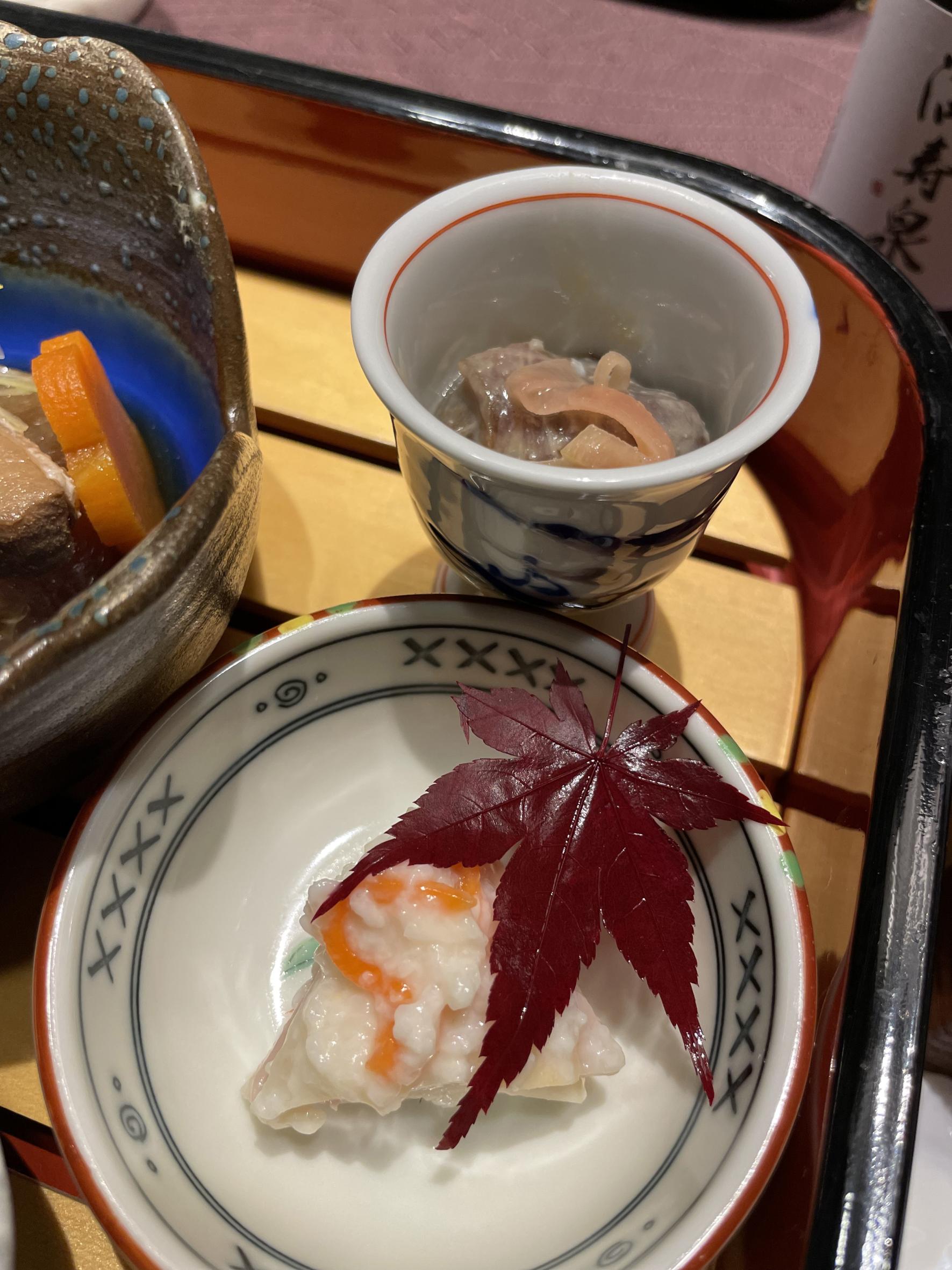 春はホタルイカや白エビ。冬はブリやズワイガニなど季節ごとの素材が会席料理で味わえます。