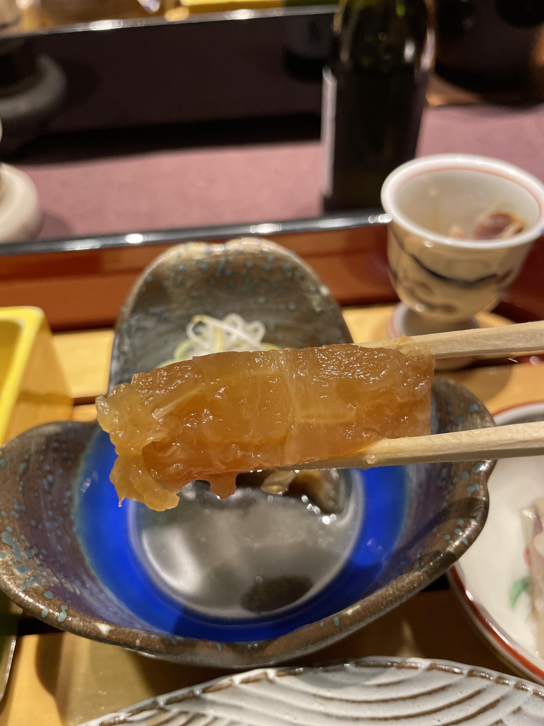 鰤の胃袋と大根、にんじんを甘酢と酢味噌で味付けされた「あんにゃなます」は嫌なクセもなくまろやかな酸味でサッパリといただけました。