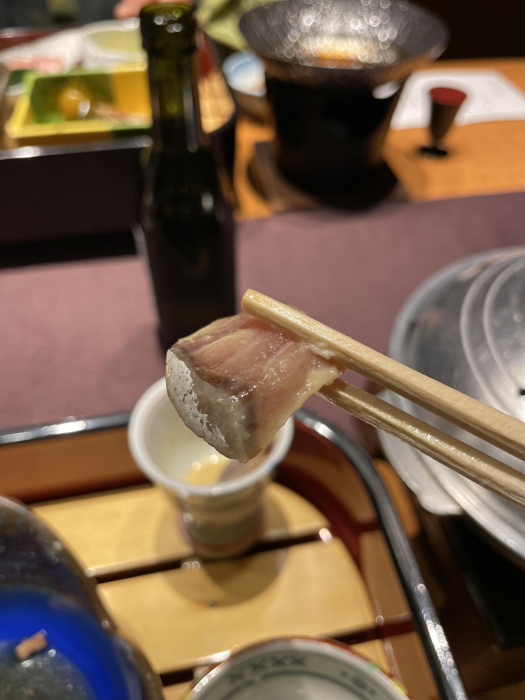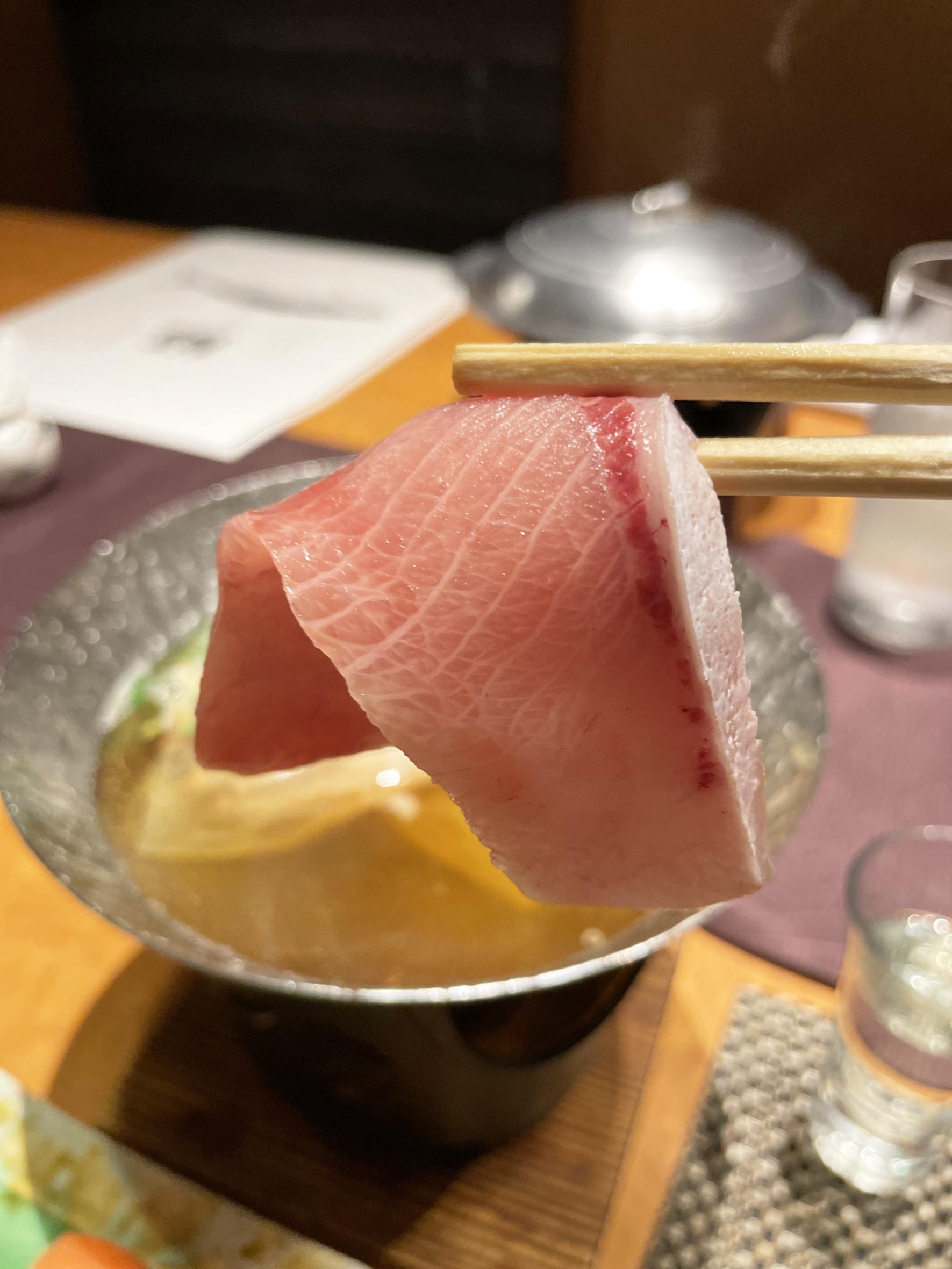 刺身でもいただける新鮮な鰤。サッと脂をお湯に潜らせていただきます。