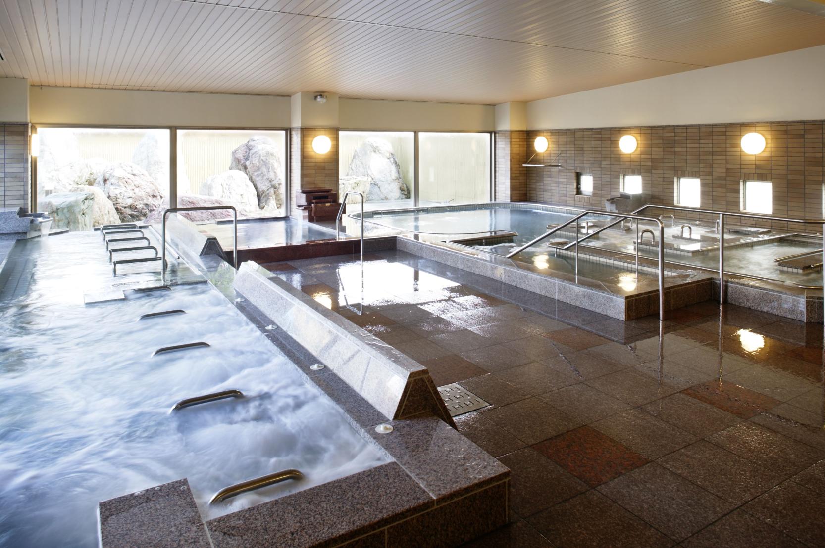 宿泊者限定の大浴場「壁画大浴殿」は300坪。