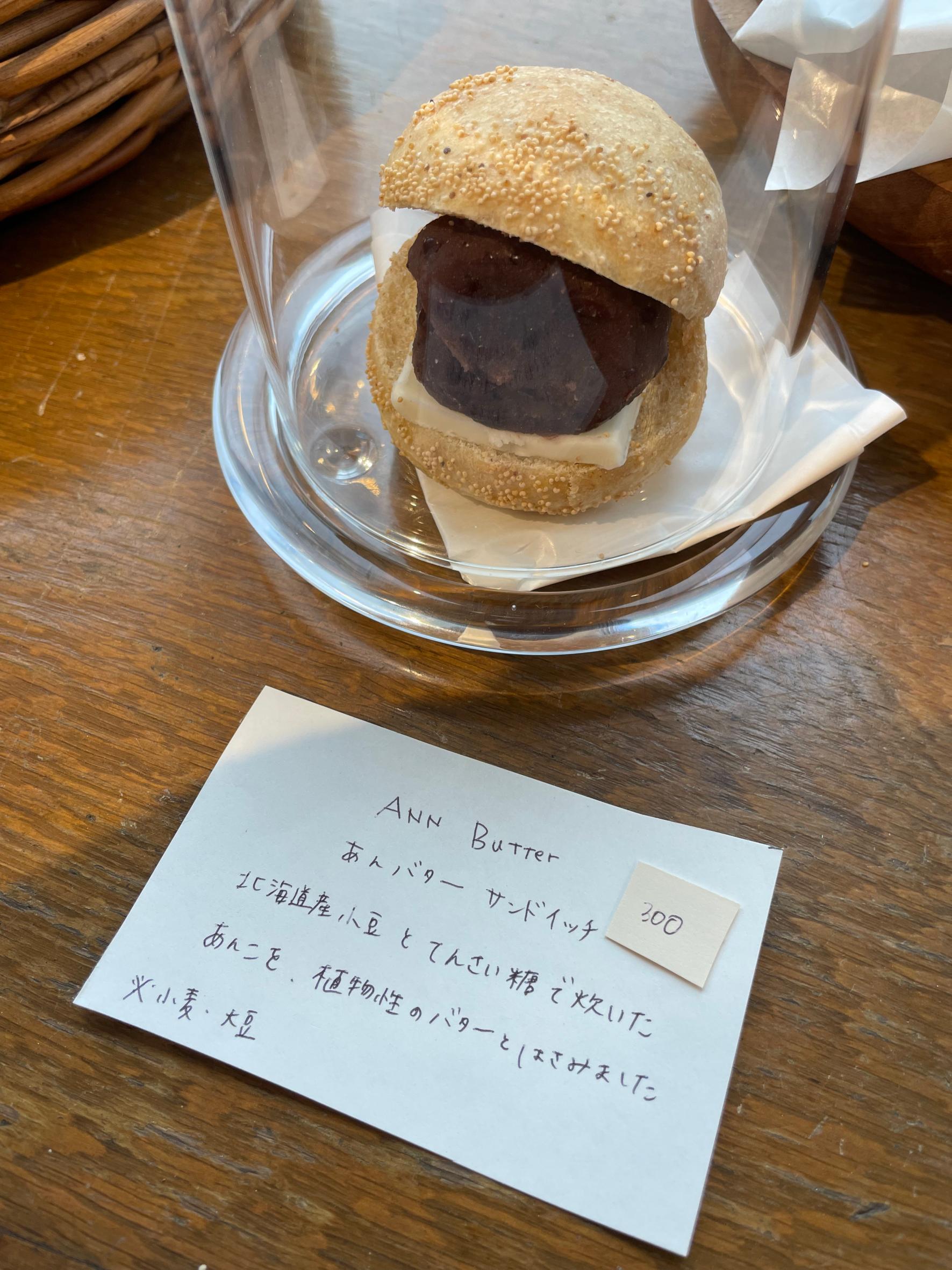 2号店定番の「あんバター」は、植物性の大豆バターと小豆、甜菜糖を使用した優しい甘さが魅力。