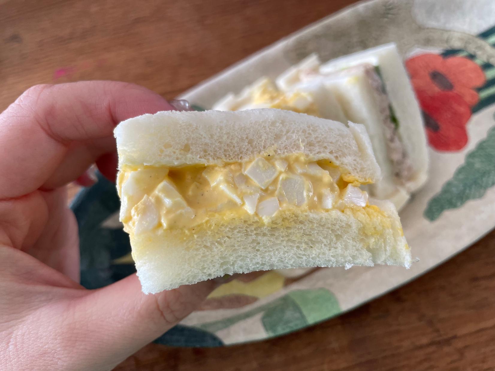 トマチサンドイッチ店のパンは、愛らしいフォルムが特徴。卵と牛乳は一切使用していません。