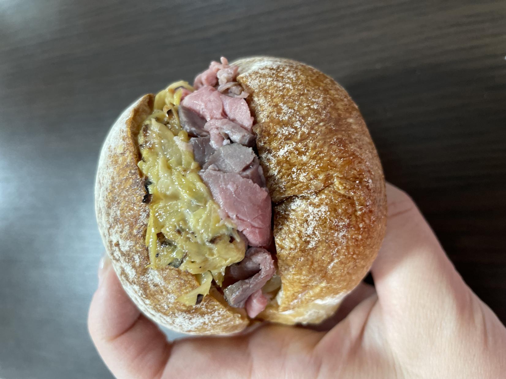 その千里食パンの生地を使ったコッペパンもまた美味。食パンとコッペ。生地は同じでも形状が違うだけでこんなにもパンの世界は広がるのかと気付かされました。
