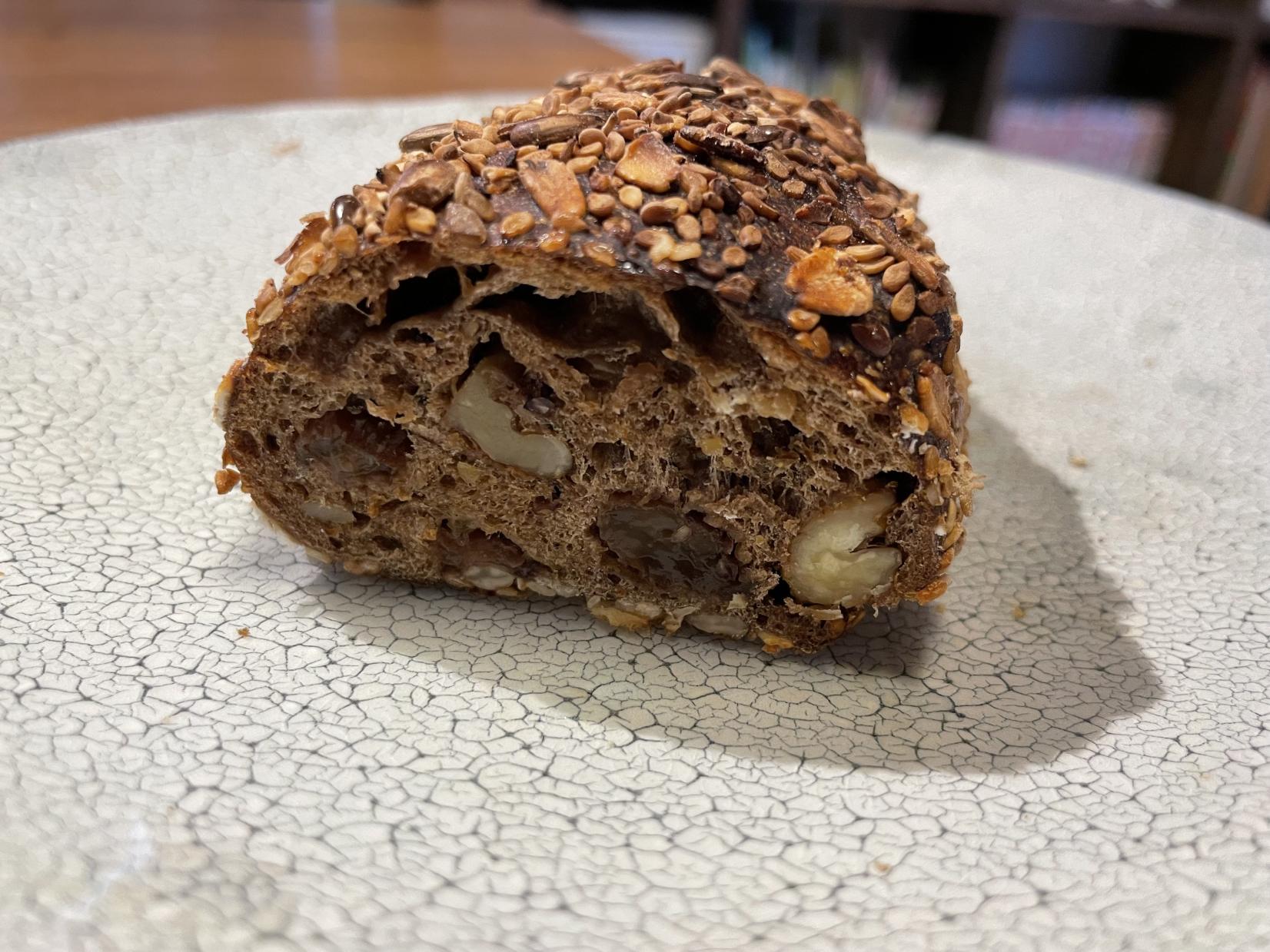 これでもかと雑穀がまぶされ、くるみとレーズンがぎっしりつまってます。