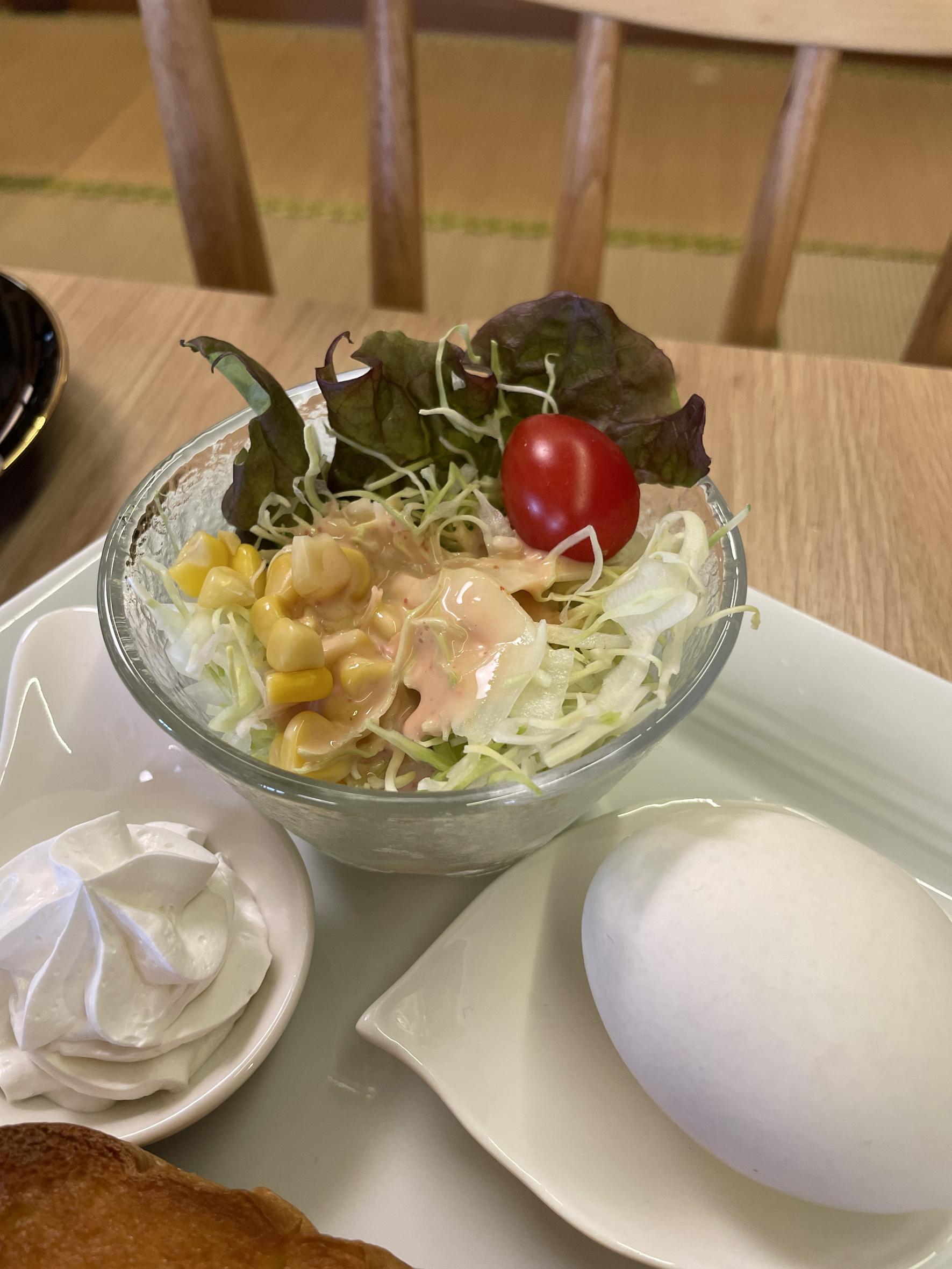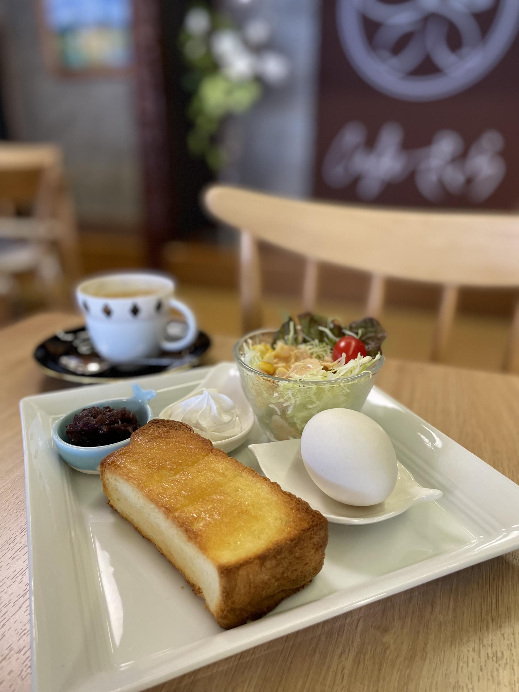 日曜の8:30~10:30までは「モーニングセット」(600円)がいただけます。サラダに固ゆで卵にトースト、コーヒーはまさに喫茶店の王道モーニング。